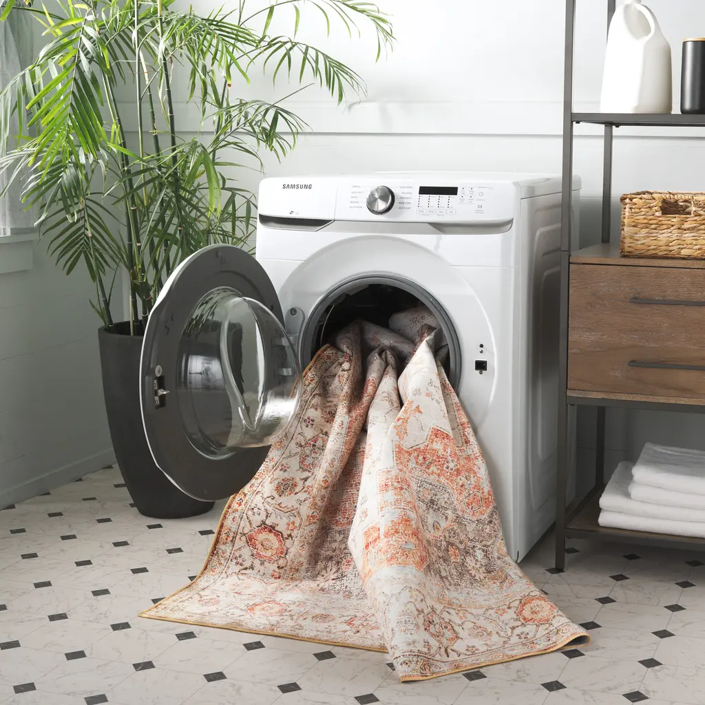 A stunning fusion of bohemian style and oriental patterns, the rugs in SAFAVIEH's Arizona Collection are a must-have for anyone looking to make a statement in their home. These rugs are machine washable and slip resistant, making them perfect for busy households that necessitate both style and practicality. The distressed look of the rugs adds a trendy edge to the traditional oriental patterns, creating a unique and captivating design.Features:Pile height is less than 0.25 inchesModern & Contemporary StyleChic PatternWeave Type: Machine-MadeMade from polyester fibers with a slip resistant backingKid and pet-friendlyStress-free cleaning includes regular vacuuming and gently blotting out minor stains with a mild detergent or carpet cleaner; Machine wash with cold water (do not use bleach); Line drying is recommended; Use an air-dry only cycle; Larger rugs may require washing in a commercial-laundromat size front-load machineFeatured in SAFAVIEH's Arizona CollectionFor over 100 years, SAFAVIEH has been crafting rugs of the highest quality and unmatched style.