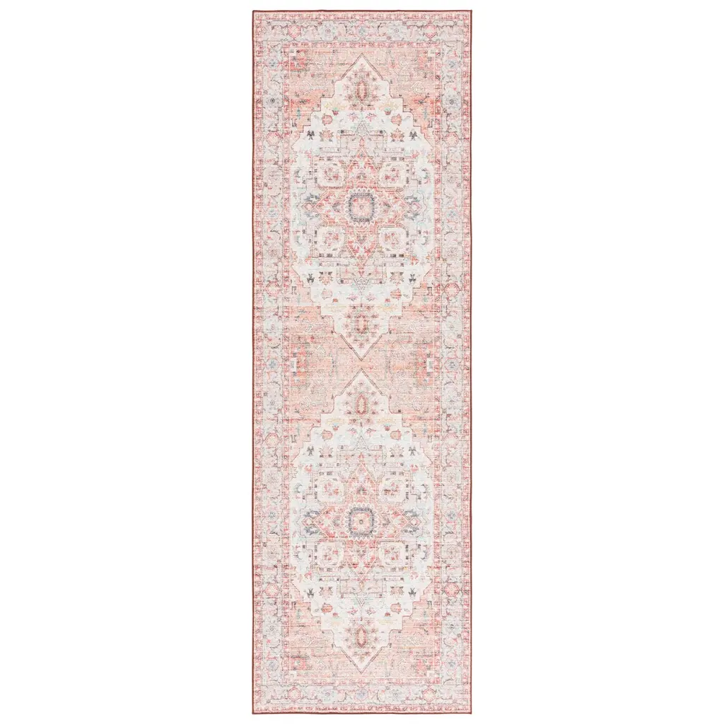 A stunning fusion of bohemian style and oriental patterns, the rugs in SAFAVIEH's Arizona Collection are a must-have for anyone looking to make a statement in their home. These rugs are machine washable and slip resistant, making them perfect for busy households that necessitate both style and practicality. The distressed look of the rugs adds a trendy edge to the traditional oriental patterns, creating a unique and captivating design.Features:Pile height is less than 0.25 inchesModern & Contemporary StyleChic PatternWeave Type: Machine-MadeMade from polyester fibers with a slip resistant backingKid and pet-friendlyStress-free cleaning includes regular vacuuming and gently blotting out minor stains with a mild detergent or carpet cleaner; Machine wash with cold water (do not use bleach); Line drying is recommended; Use an air-dry only cycle; Larger rugs may require washing in a commercial-laundromat size front-load machineFeatured in SAFAVIEH's Arizona CollectionFor over 100 years, SAFAVIEH has been crafting rugs of the highest quality and unmatched style.