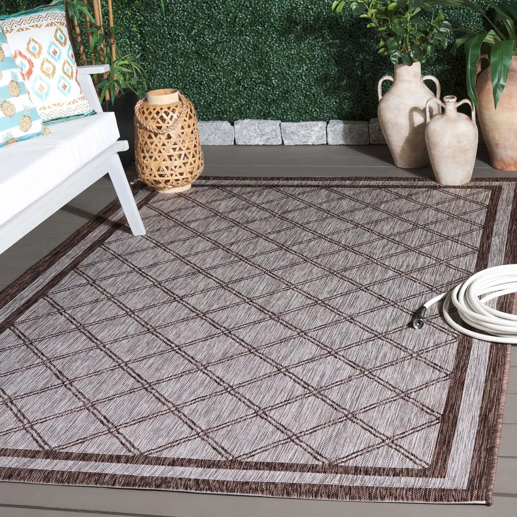 Perfect for any backyard, patio, deck, sunroom, veranda, or poolside, this stylish rug from the Courtyard Collection is a practical addition to any outdoor or indoor living space. Conveniently pet and kid-friendly, this easy-care rug is also well-suited for high-traffic areas including the mudroom or kitchen. This beautiful rug collection takes outdoor decorating to the next level with new designs in fashion-forward colors, and patterns from classic to contemporary. Features:Stain, Weather, and UV-Resistant: Machine-woven from enhanced synthetic fibers for virtually no shedding and stain resistanceKid and Pet-Friendly: Safe for high-traffic areas of the home and conveniently kid approved and pet-friendly for life's unpredictable messesTrendy Style: Design beautifully enhances any room, including the patio, deck, kitchen, backyard, porch, dining room, mudroom, veranda, living room, or entrywayEasy Maintenance & Durable: Stress-free cleaning includes regular vacuuming, and rinsing with a garden hose with soapy water and air drying; When not in use for outdoors, we recommend storing awayLow Pile Height: Pile thickness is 0.25-inches for a sleek lookFeatured in SAFAVIEH's Courtyard CollectionFor over 100 years, SAFAVIEH has been crafting rugs of the highest quality and unmatched style.