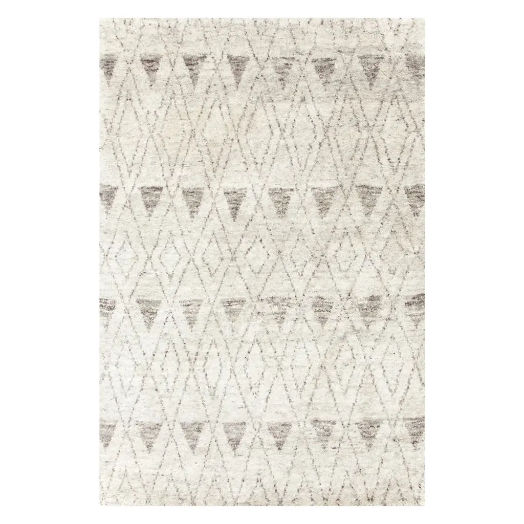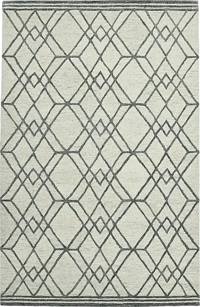 Elevate your living space with this exquisite 4' X 6' hand-tufted wool area rug, expertly crafted in India. The small rectangle design features a plush 3/8" pile height, creating a soft underfoot experience. Showcasing a sophisticated ivory and grey color palette, its timeless style complements a variety of decors. The elegance is in the details, with a pattern that brings a touch of classic charm. Its cotton cloth backing adds durability to beauty. Please note, this rug is not washable and lacks slip resistance, adding to its luxurious appeal. A testament to fine craftsmanship, it's a piece not just for walking on but for admiring.
