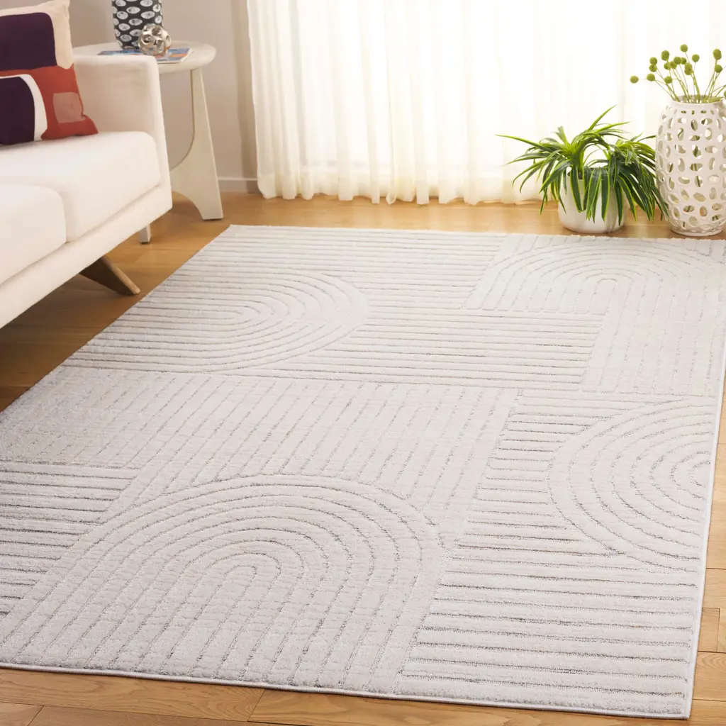 Discover the effortless elegance of SAFAVIEH's Elmhurst Rug Collection, where a light neutral colorway effortlessly harmonizes with any decor. From geometric to abstract, the collection offers a diverse array of patterns that captivate the eye. Crafted with high-low fibers for added texture underfoot, these rugs, made from easy-care fibers, redefine the intersection of style and practicality in your living space. Rug sizes may vary slightly.Features:Virtually non-sheddingPattern beautifully enhances any room of the home, from the living room, dining room, bedroom, entryway, nursery, dorm room, study, home office, or eat-in kitchen Stress-free cleaning includes regular vacuuming and gently blotting out minor stains with a mild detergent or carpet cleanerPile thickness is 0.5 inches for a soft feeling underfoot and for seamless placement underneath furniture or in entrywaysFeatured in SAFAVIEH's Elmhurst CollectionFor over 100 years, SAFAVIEH has been crafting rugs of the highest quality and unmatched style.