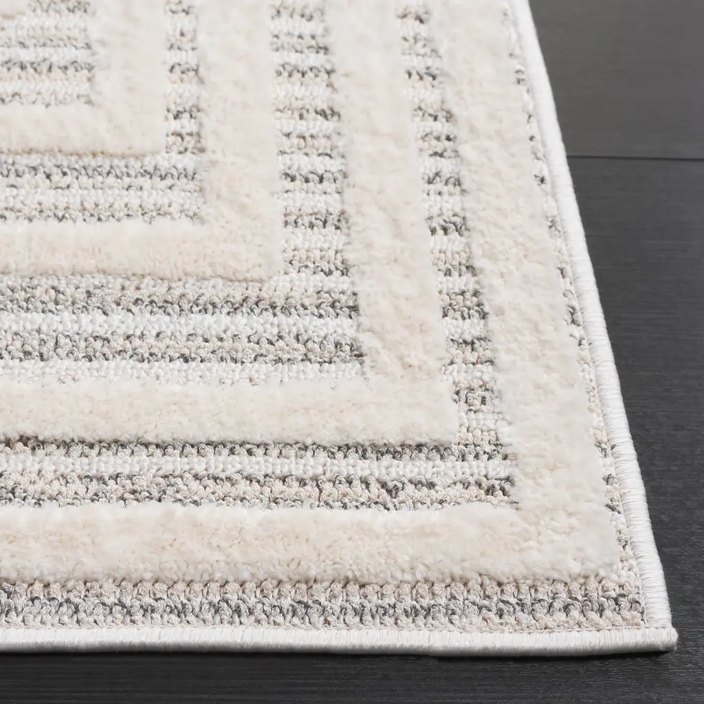 Discover the effortless elegance of SAFAVIEH's Elmhurst Rug Collection, where a light neutral colorway effortlessly harmonizes with any decor. From geometric to abstract, the collection offers a diverse array of patterns that captivate the eye. Crafted with high-low fibers for added texture underfoot, these rugs, made from easy-care fibers, redefine the intersection of style and practicality in your living space. Rug sizes may vary slightly.Features:Virtually non-sheddingPattern beautifully enhances any room of the home, from the living room, dining room, bedroom, entryway, nursery, dorm room, study, home office, or eat-in kitchen Stress-free cleaning includes regular vacuuming and gently blotting out minor stains with a mild detergent or carpet cleanerPile thickness is 0.5 inches for a soft feeling underfoot and for seamless placement underneath furniture or in entrywaysFeatured in SAFAVIEH's Elmhurst CollectionFor over 100 years, SAFAVIEH has been crafting rugs of the highest quality and unmatched style.