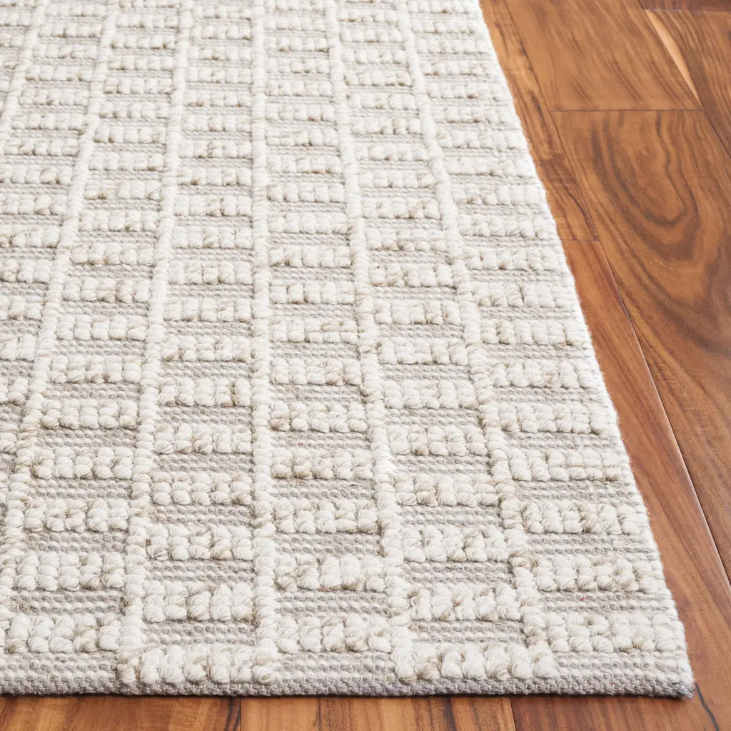 The epitome of sophisticated beach house style, the Natura Collection exudes an artisan-crafted look and texture. Soft, lustrous yarns are hand-tufted to create contrasting textures, including oversized loops and flat surfaces that are rich in dimension. An array of braided motifs, twills and boucle effects distinguishes this casual rug collection.Features:Pile height is 0.25 - 0.5 inchTransitional StyleChic Geometric PatternWeave Type: Hand-WovenFeatured in SAFAVIEH's Natura CollectionFor over 100 years, SAFAVIEH has been crafting rugs of the highest quality and unmatched style.