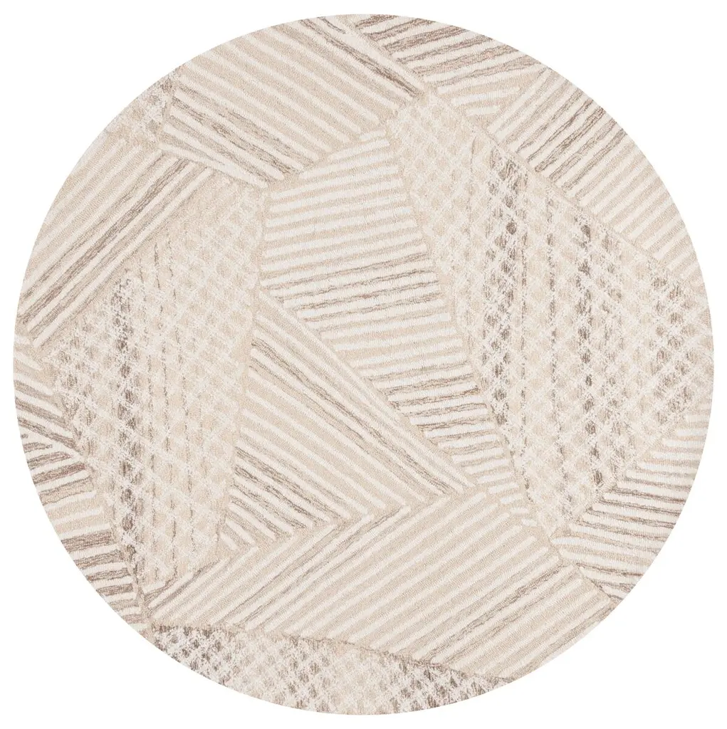Safavieh Hand-Tufted Abstract Dragija Modern & Contemporary Wool Rug - 6' Round - Ivory/light Brown - Round