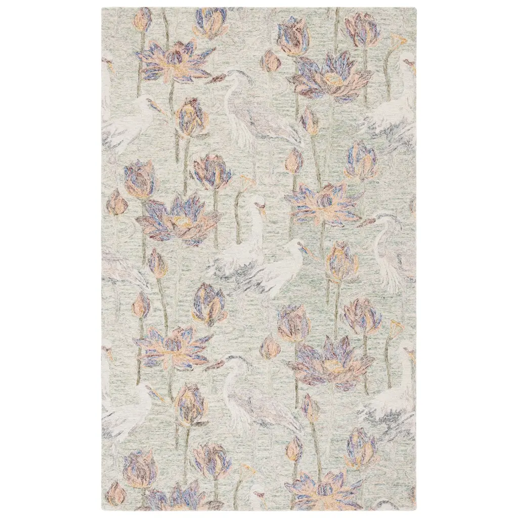 Safavieh Hand-Tufted Blossom Fahrije Modern & Contemporary Wool Rug - 6' Square - Green/ivory - Square