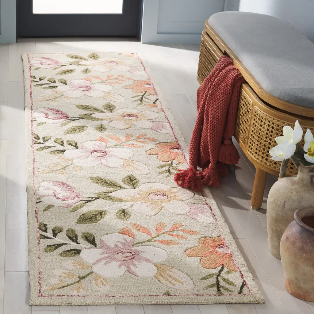 The rugs of the Blossom Collection are bold, colorful updates of classic hooked rugs. Made using large hand woven loops, the texture of Blossom rugs inspires a fresh approach to country casual interiors. Woven of 100-percent premium wool, Blossom area rugs bring traditional English chintz and block print motifs into today's cultured home decor.Features:Pile height is 0.25 - 0.5 inchModern & Contemporary StyleChic PatternWeave Type: Hand-TuftedFeatured in SAFAVIEH's Blossom CollectionFor over 100 years, SAFAVIEH has been crafting rugs of the highest quality and unmatched style.
