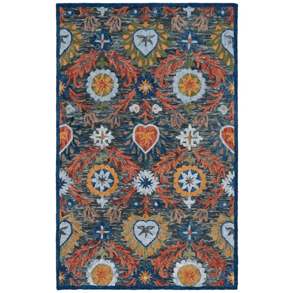 Safavieh Hand-Tufted Blossom Nete Modern & Contemporary Wool Rug - 4' X 6' - Charcoal/orange - Rectangle