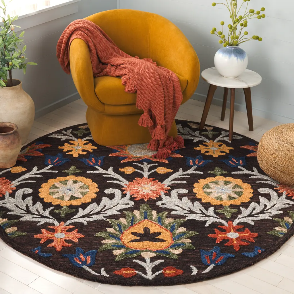 Safavieh Hand-Tufted Blossom Nete Modern & Contemporary Wool Rug - 6' Round - Charcoal/orange - Round