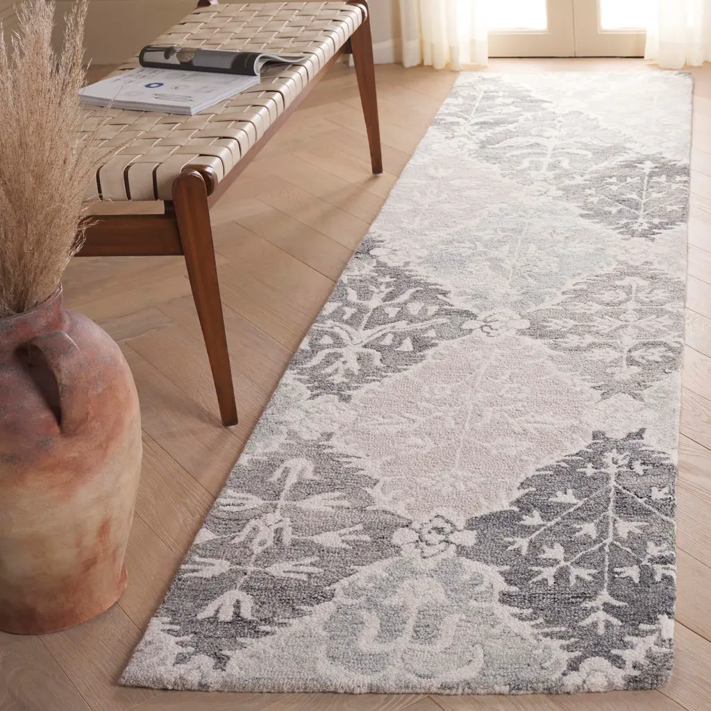 The Ebony Collection features fresh contemporary designs in textured wool blends. Masterfully hand-tufted by skilled artisans, these area rugs feature appealing motifs and trendy color palettes. Perfect for medium to low-traffic living spaces in need of a stylish update.Features:Pile height is 0.5 inchesRustic StyleChic PatternWeave Type: Hand-Tufted Featured in SAFAVIEH's Ebony CollectionFor over 100 years, SAFAVIEH has been crafting rugs of the highest quality and unmatched style.