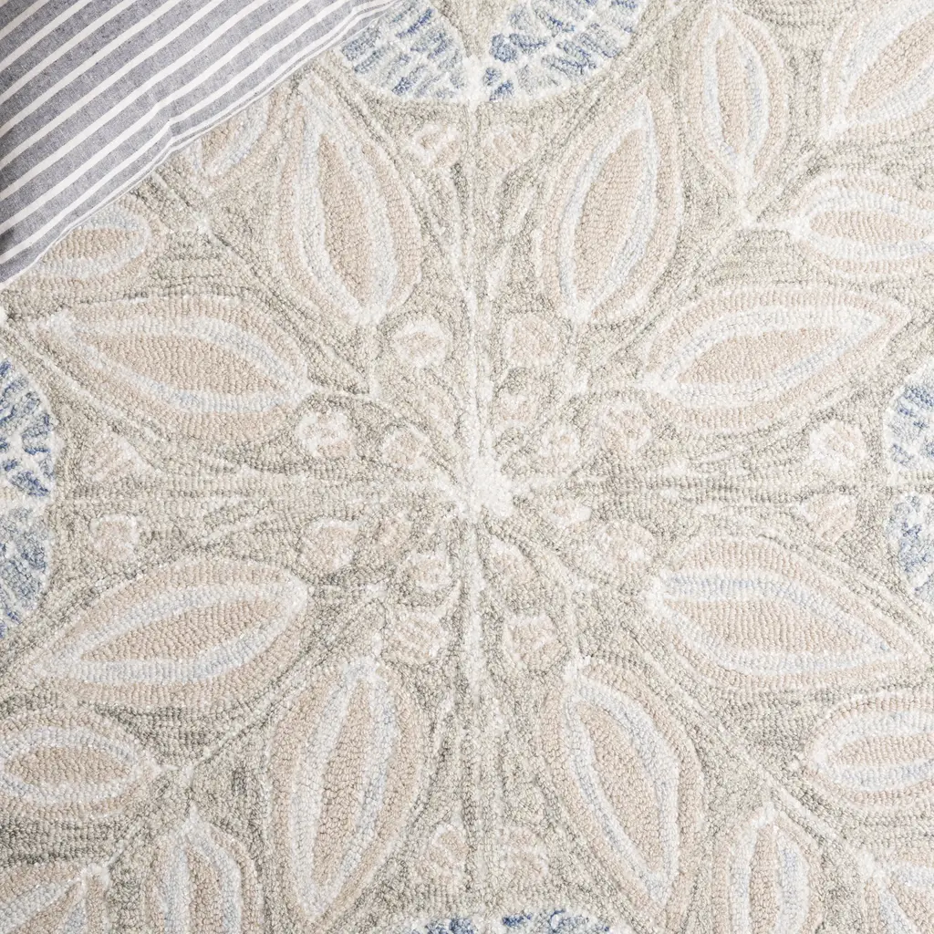 Safavieh Hand-Tufted Jardin Osuma Country Wool Rug - 6' Round - Light Grey/ivory - Round