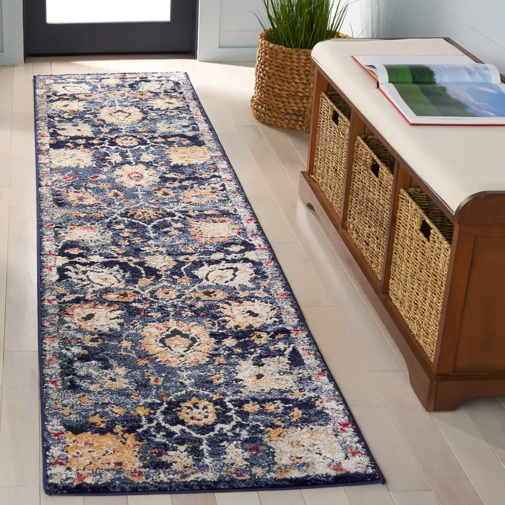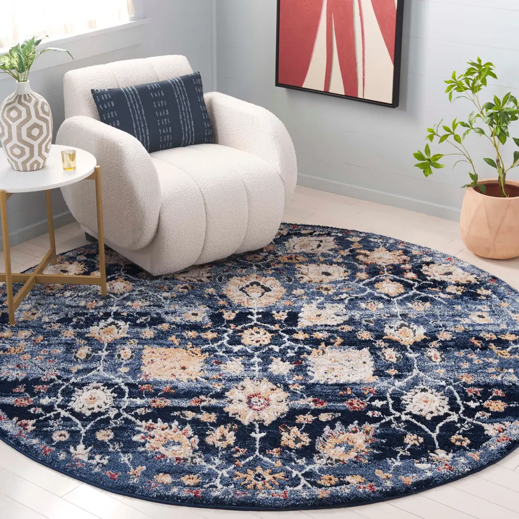Safavieh Luna Grima Traditional Rug - 6'7" Square - Navy/blue - Square