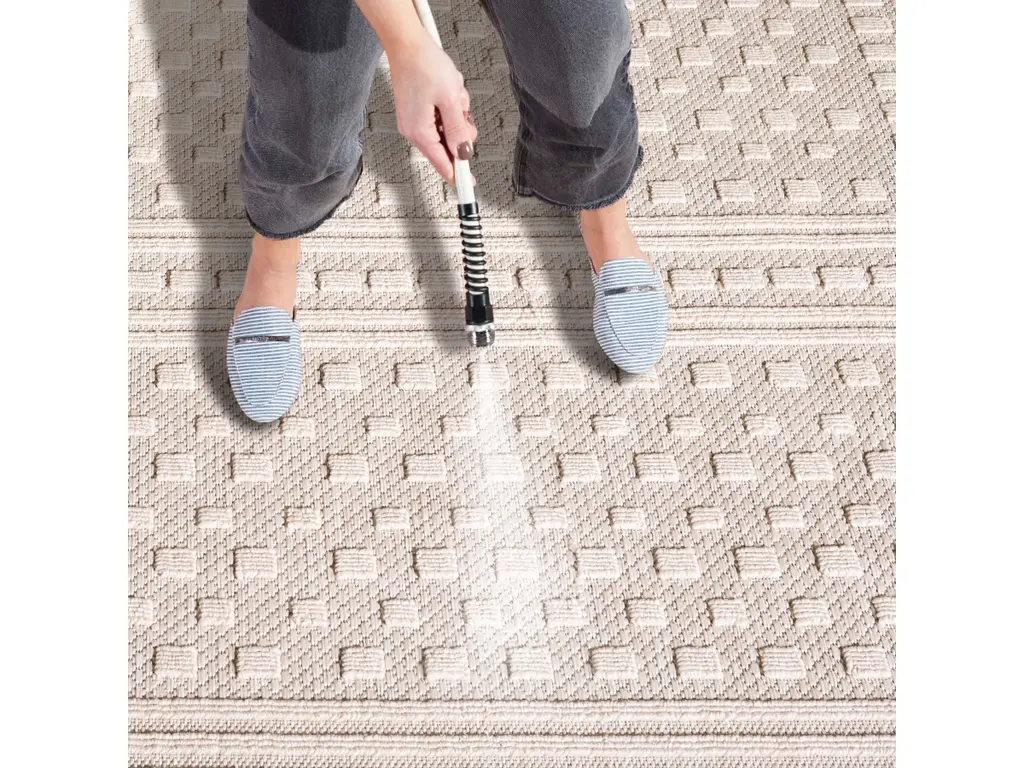 Milos outdoor rugs bring interior decor style to leisure living spaces indoors and out. Styled with modern geometric patterns in a myriad of fashionable colors, Milos rugs are easy-care, easy-clean and ideally suited for busy traffic areas of the home. Power loomed using high-performance synthetic yarns for long lasting charm and beauty.