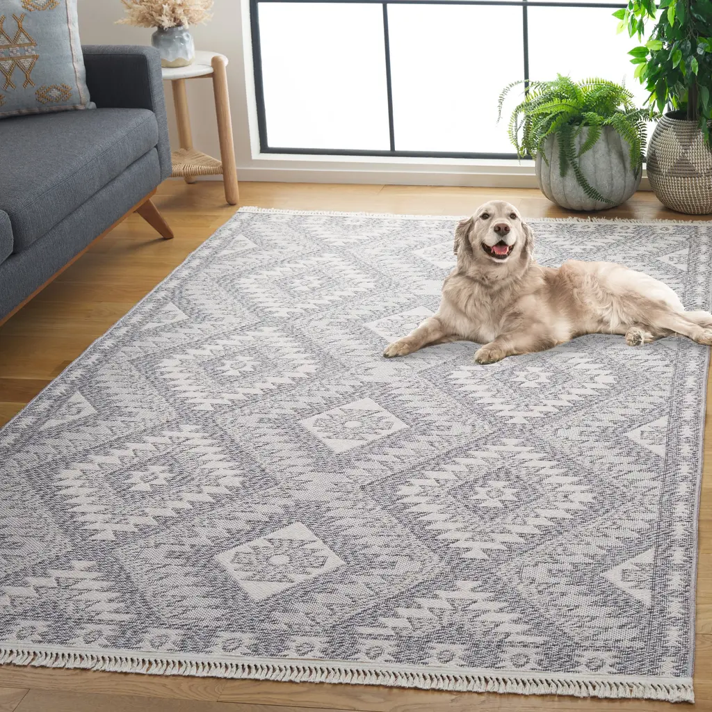 Safavieh Prairie Velga Modern & Contemporary Cotton Rug - 4' X 6' - Grey/ivory - Rectangle