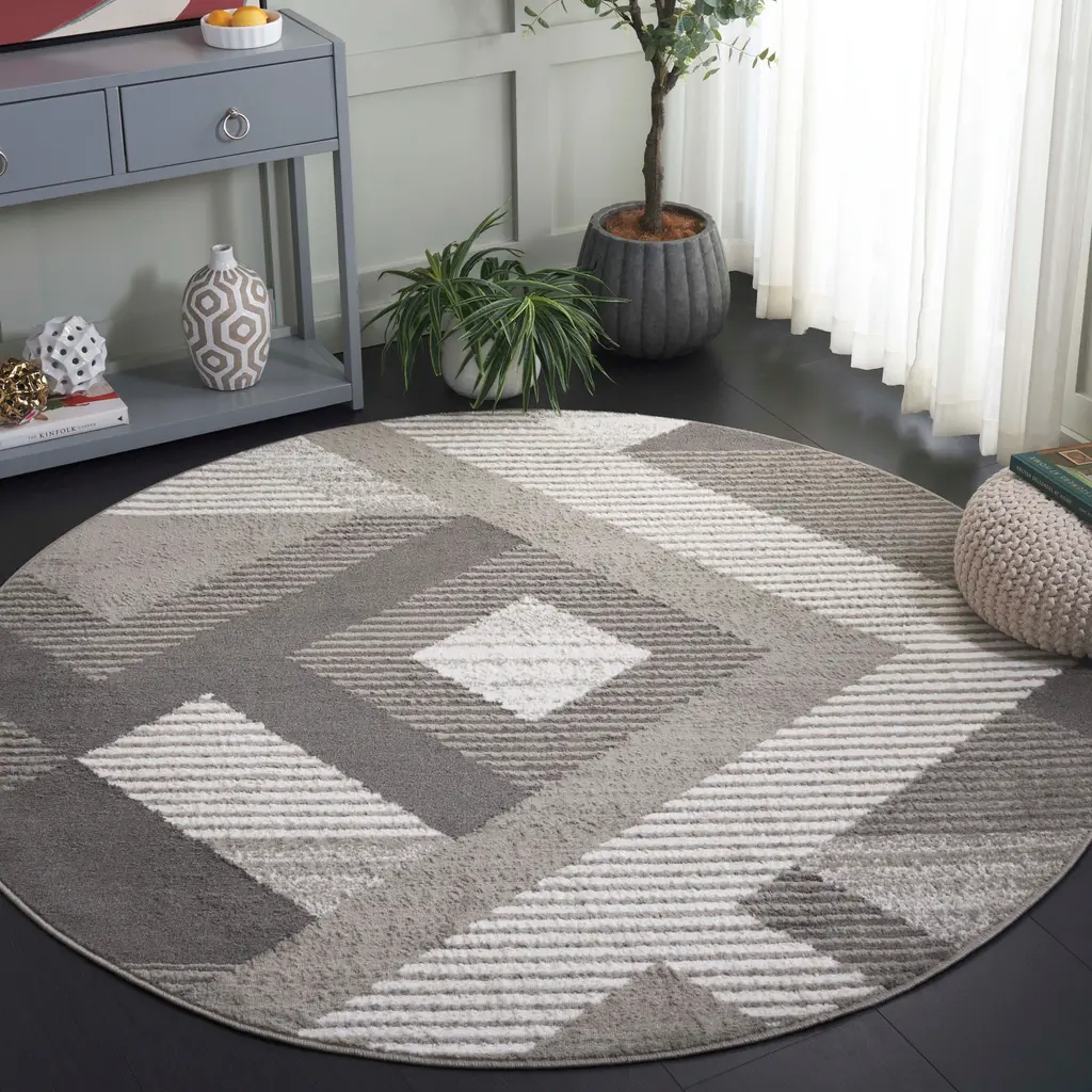 Safavieh Pyramid Sadeta Modern Geometric Rug - 6'7" Round - Grey/ivory - Round