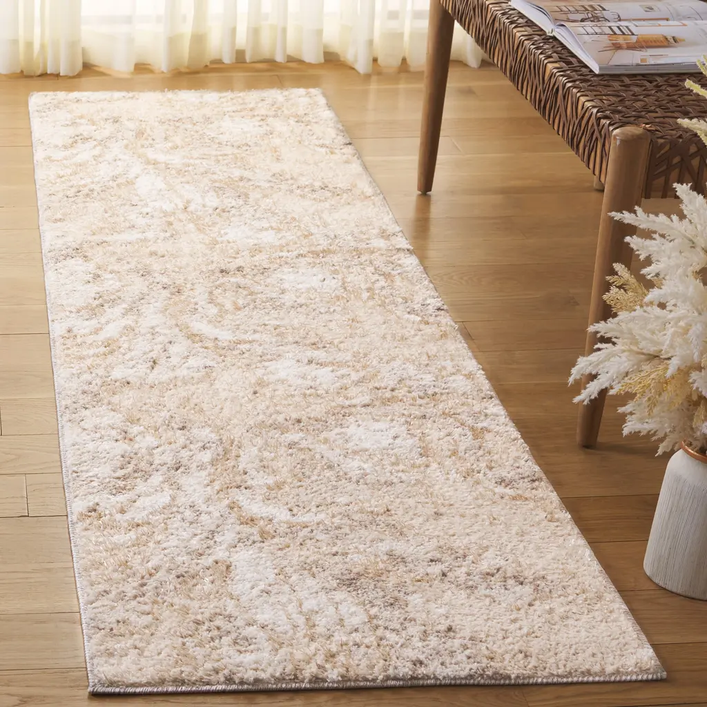 Immerse yourself in the sumptuous luxury of SAFAVIEH's Ravine Shag Collection, where non-shedding fibers redefine easy care. With a plush 0.75-inch pile, this collection offers just the right amount of softness underfoot, creating a cozy haven in your living space. Adorned with abstract patterns and a high-low textured pile, the Ravine Shag Collection is a harmonious blend of contemporary design and indulgent comfort. Rug sizes may vary slightly.Features:Non-Shedding: Expertly machine-woven from enhanced soft synthetic durable fibers that have a virtually non-shedding pile for ultimate conveniencePlush & Cozy: Features a .75-inch thick pile height for just the right amount of cozy cushioned softness underfootTrendy Style: Design beautifully enhances any room of the home, from the living room, dining room, bedroom, hallway, foyer, nursery, kid's room, playroom, dorm room, study, or home officeEasy Maintenance & Durable: Stress-free cleaning includes regular vacuuming (without a beater bar) and gently blotting out minor stains with a mild detergent or carpet cleanerFeatured in SAFAVIEH's Ravine CollectionFor over 100 years, SAFAVIEH has been crafting rugs of the highest quality and unmatched style.