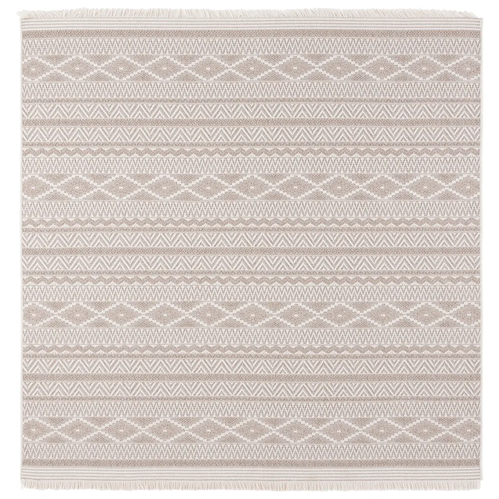 Transform your space with SAFAVIEH's Wicker Rug Collection, expertly crafted from durable synthetic fibers that effortlessly blend indoor and outdoor living. The stylish fringe detail adds a boho vibe, creating a fashionable and inviting atmosphere. Evoking rustic farmhouse charm through its color palette and patterns, the Wicker Collection is a versatile and chic addition to any area of your home. Rug sizes may vary slightly. Features:Stain, Weather, and UV-Resistant: Machine-woven from enhanced synthetic fibers for virtually no shedding and stain resistanceKid and Pet-Friendly: Safe for high-traffic areas of the home and conveniently kid approved and pet-friendly for life's unpredictable messesTrendy Style: Design beautifully enhances any room, including the patio, deck, kitchen, backyard, porch, dining room, mudroom, veranda, living room, or entrywayEasy Maintenance & Durable: Stress-free cleaning includes regular vacuuming, and rinsing with a garden hose with soapy water and air drying; When not in use for outdoors, we recommend storing awayLow Pile Height: Pile thickness is 0.25-inches for a sleek lookFeatured in SAFAVIEH's Wicker CollectionFor over 100 years, SAFAVIEH has been crafting rugs of the highest quality and unmatched style.