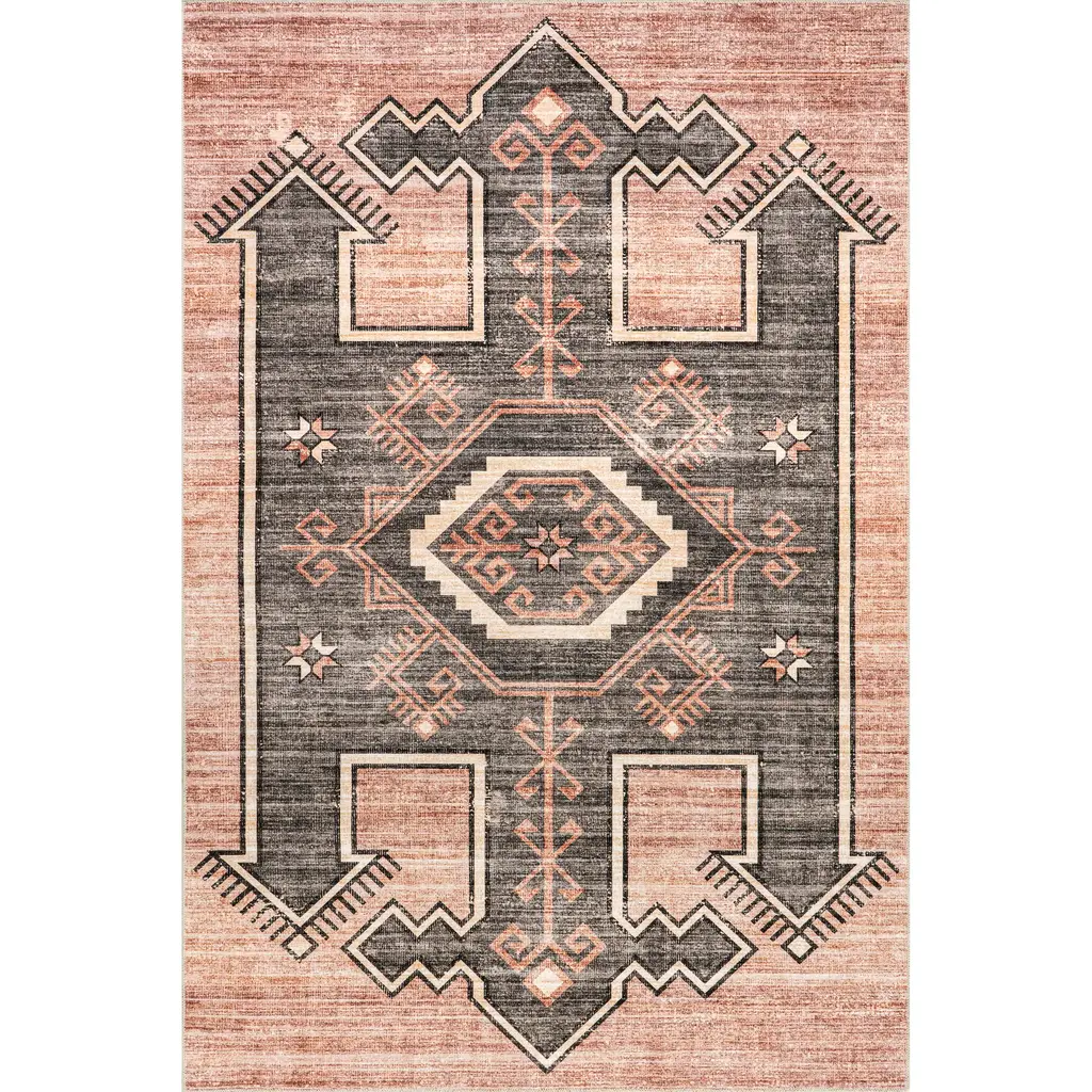 Sagebrush Geometric Machine Washable Area Rug - 5' X 8' - Blush - Rectangle