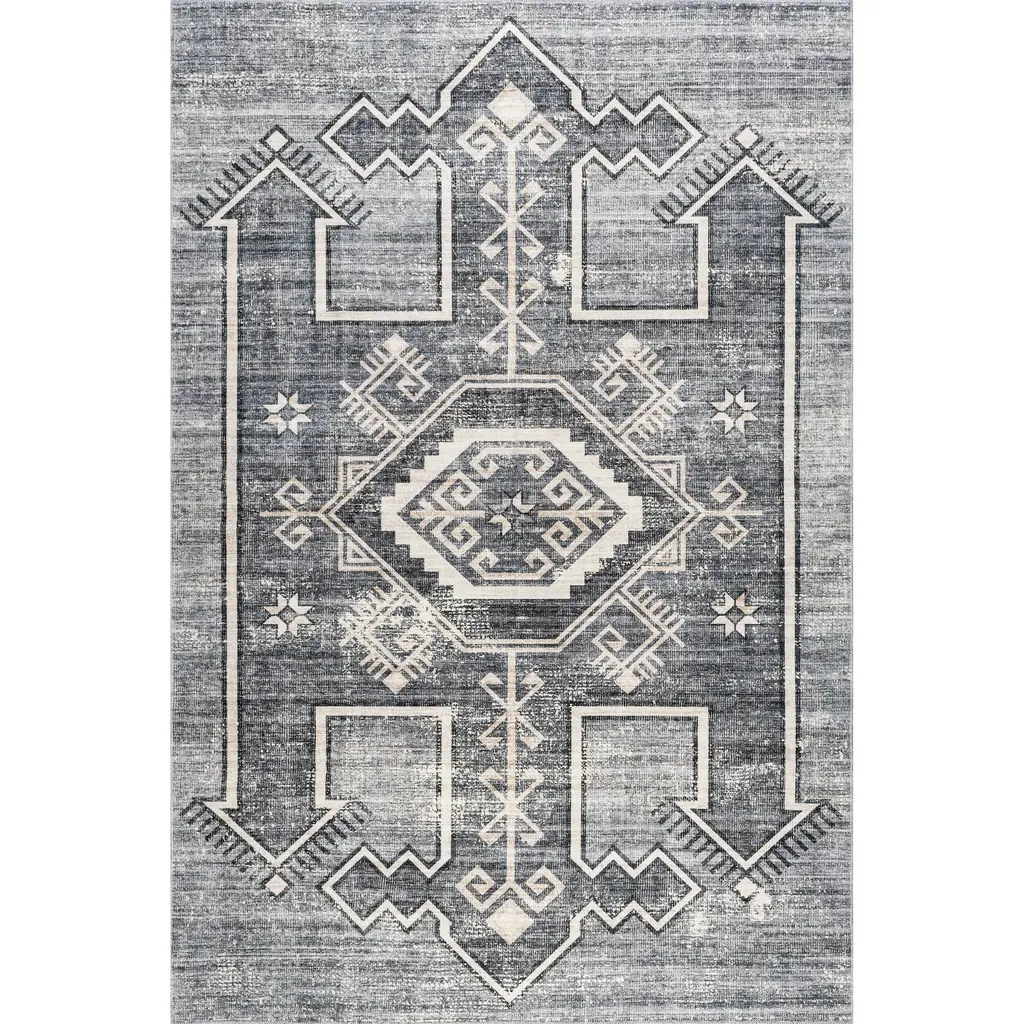 Sagebrush Geometric Machine Washable Area Rug - 8' X 10' - Grey - Rectangle