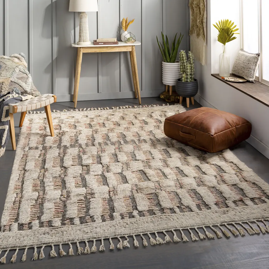 The Sahara Collection features compelling global inspired designs brimming with elegance and grace! The perfect addition for any home, these pieces will add eclectic charm to any room! With their hand knotted construction, these rugs provide a durability that can not be found in other handmade constructions, and boasts the ability to be thoroughly cleaned as it contains no chemicals that react to water, such as glue. Made with Wool in India, and has High Pile. Spot Clean Only, One Year Limited Warranty.