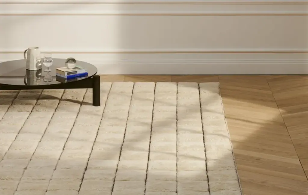 The Sahara modern carpet is a contemporary reinterpretation of the Berber rugs made by nomadic desert tribes. The finished product achieves a symbolic harmony that blends with the space, creating an overall connection. Available in two shapes: round (Sahara Drop) and rectangular (Sahara Grid).
