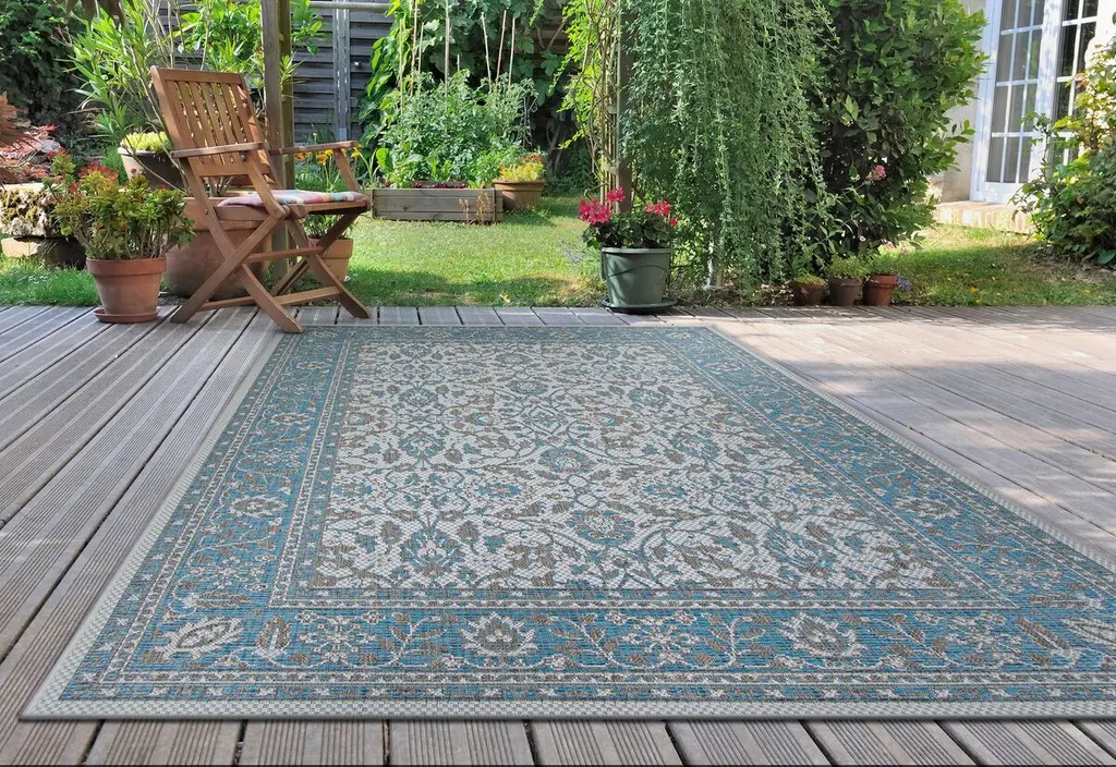 Fade-resistant, mildew-resistant, and mold-resistant, this rug is ideal for dressing up your porch, patio, or poolside. What's more, its classic design makes it a stylish option for high-traffic indoor areas such as the entry and the kitchen. A rug pad is recommended to prevent slipping.