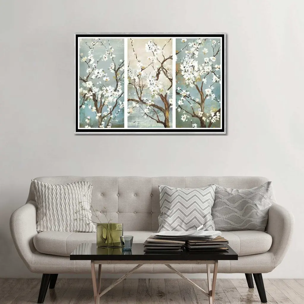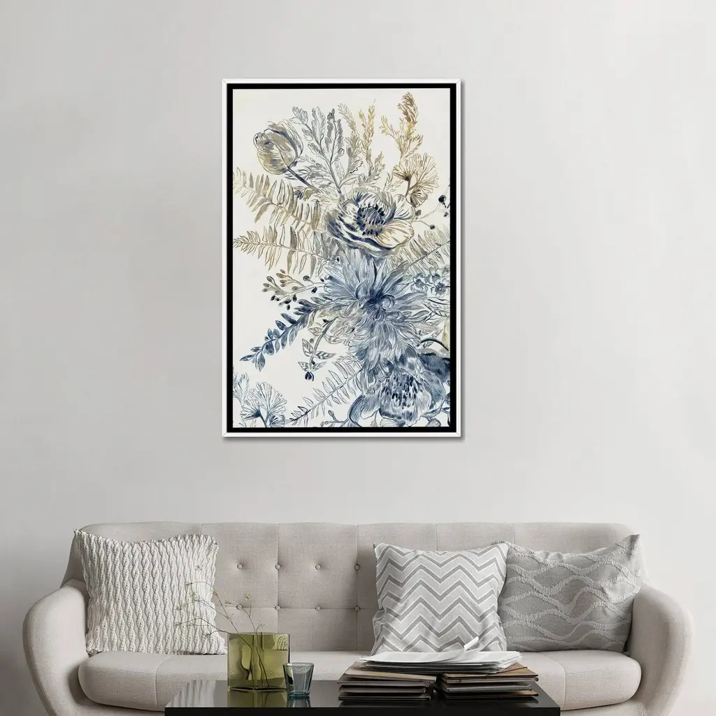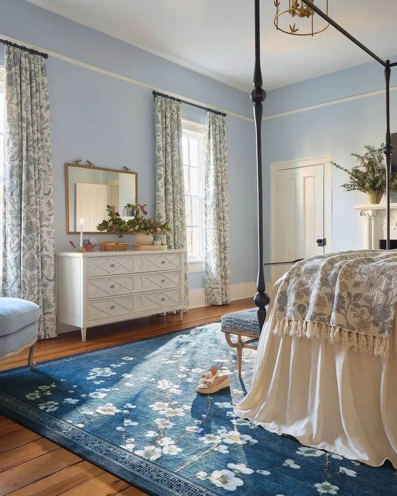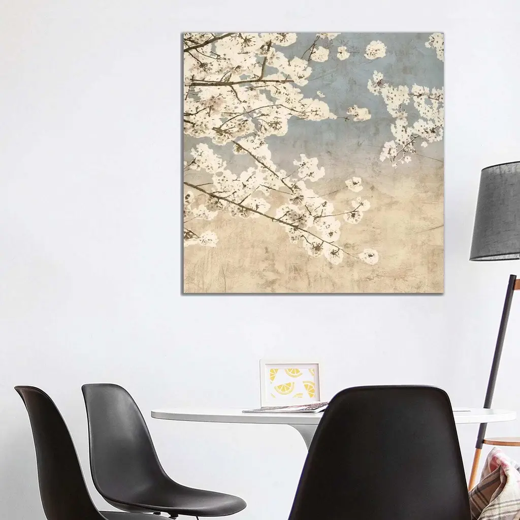 Inspired by the elegance of Japanese sakura trees, our Gracie Sakura Indigo Rug features cherry blossoms cascading from branches at the top of the bordered, textured layout. A warm palette of off-white and cream pops beautifully against the deep navy background. Water-resistant, stain-resistant, and machine-washable. Rug colors may vary slightly according to your device and the lighting in your space.