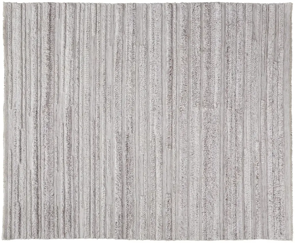 This Hand Woven Rug Features Natural Undyed Gray Wool With Looped Ivory Raised Details.