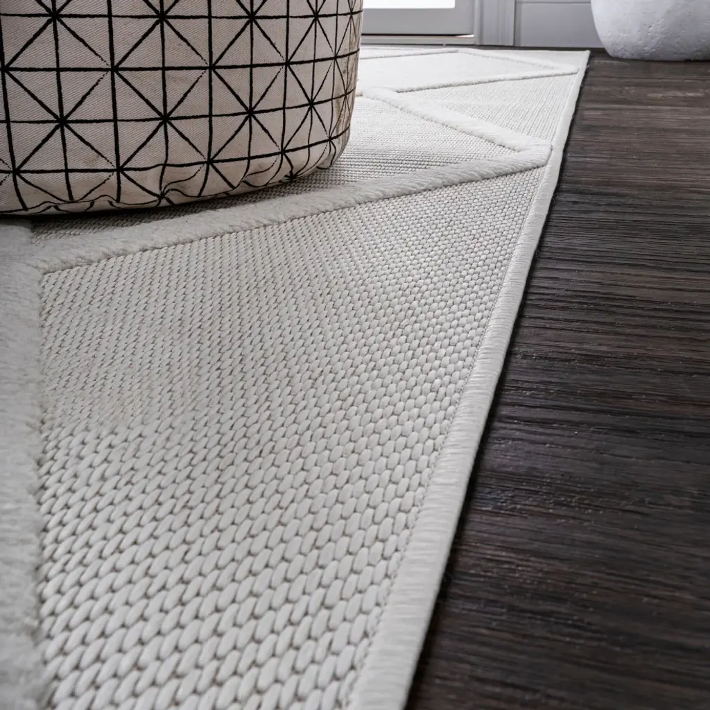 Inspired by timeless Mediterranean patterns, this indoor-outdoor rug adds cool neutral tones to a kitchen, living room, bedroom or dining room. The ivory trellis design is an easy maintenance solution for homes with kids and pets. Outdoors, this rug adds classic color and traditional pattern to your patio or porch.Features:• Power loomed in a low pile that''s soft and durable, with a latex backing for added stability• Woven in shades of ivory with mingled beige threads for a handmade effect• Made from easy-care polypropylene - just sweep, vacuum or hose down with mild soap and water• 100% Polypropylene• No backing, use of rug pad is recommended (sold separately)• Power Loomed in Turkey• Actual Dimension: 7 ft. 9 in. x 10 ft.• Color: Ivory• Thickness measures: 0.43 in.• Available in multiple sizes and/or colorsRug Care:• Vacuum regularly and spot clean as needed; avoid direct and continuous exposure to sunlight; use brushless vacuum; remove spills immediately; if liquid, blot with clean, undyed cloth by pressing firmly around the spill to absorb as much as possible; for hard to remove stains, professional rug cleaning is recommended; store in a dry, well ventilated area and rotate for consistent wear• Packing and shipping may cause temporary creases in rugs, which will flatten out after a week on the floor; to expedite the process, try back-rolling your rug before laying it down, and then allow ample time for the remaining creases to relax• Please Note: Due to differences in monitors, some rug colors may vary slightly. Lengths and widths may vary from the published dimensions. Patterns may vary slightly according to shape and size selected.About us:Style your floors with JONATHAN Y. By combining fine craftsmanship and design, this New York creative studio is bringing fashion to your floors. The collection mixes sustainable organic materials, vibrant colors and trend worthy styles to create JONATHAN Y''s distinctive catalog of rugs.