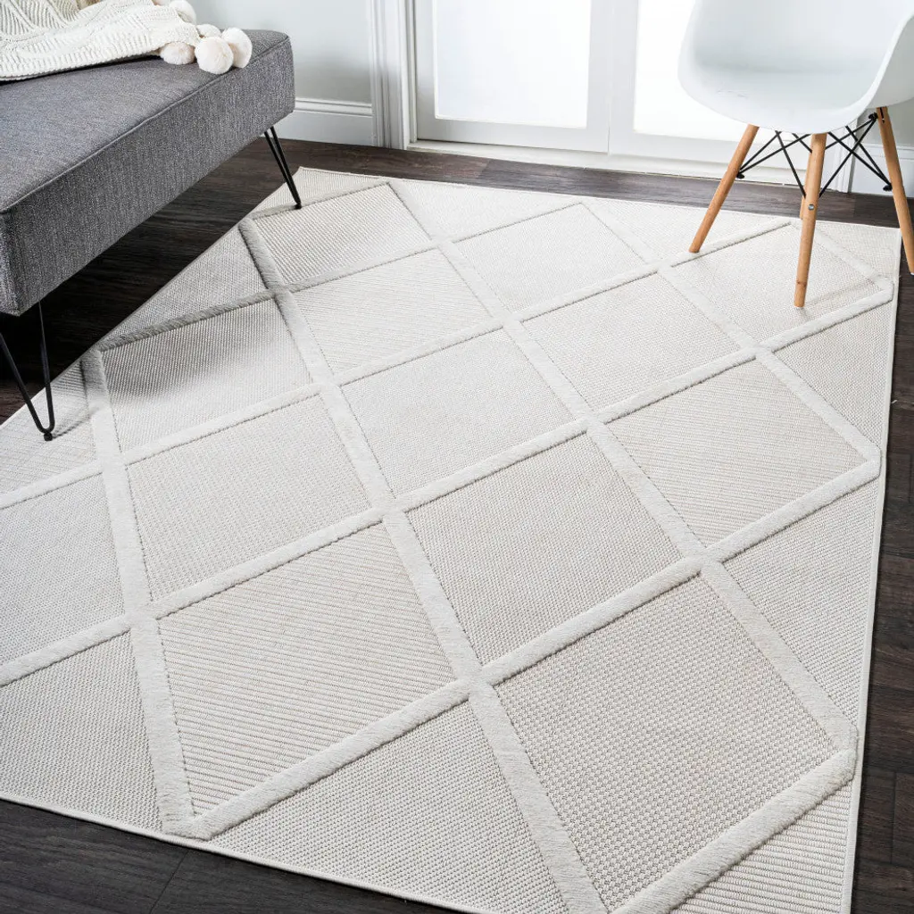 Salines Diamond Trellis Indoor/outdoor Area Rug, Ivory, 7'9"x10'