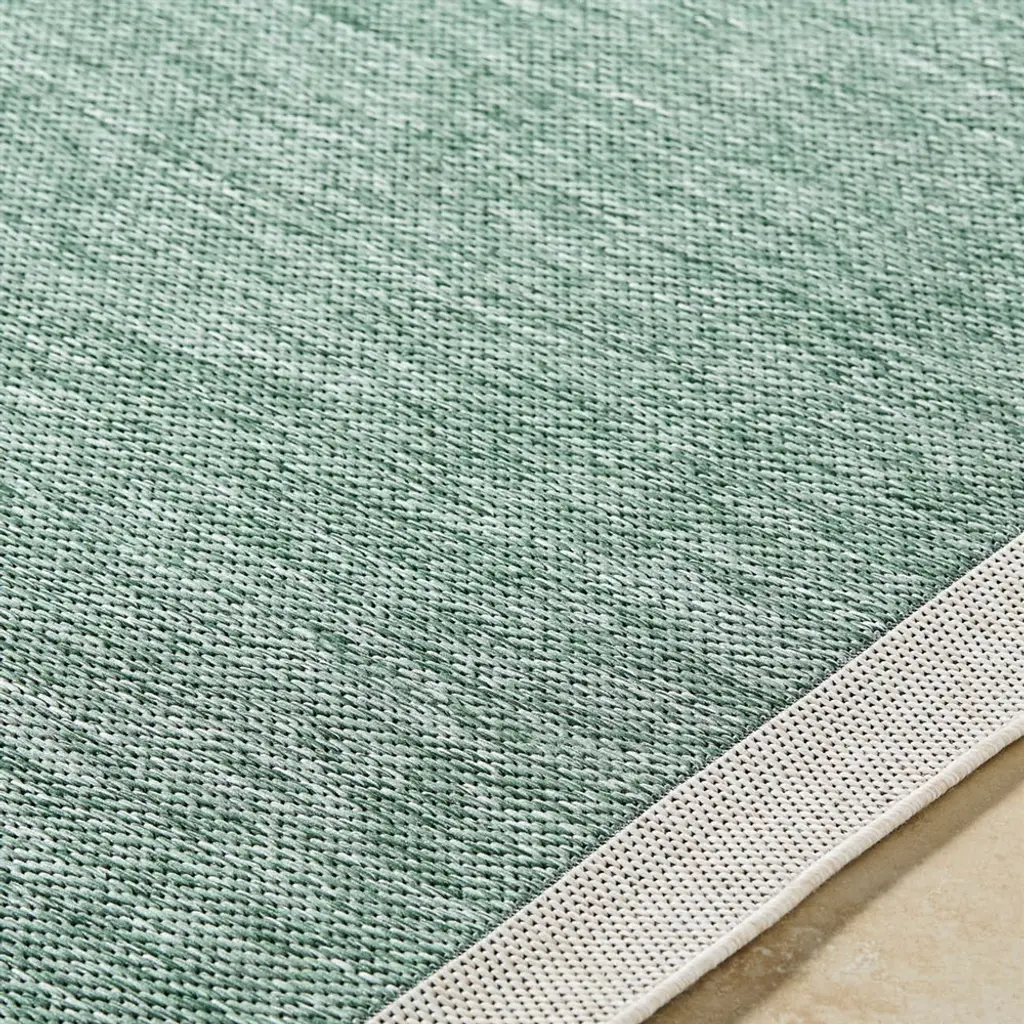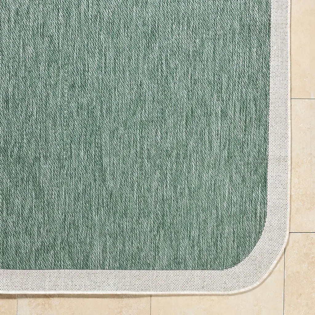 Salome Coastal Beach Green Cream Border Indoor Outdoor Rug - 5'3"x7'