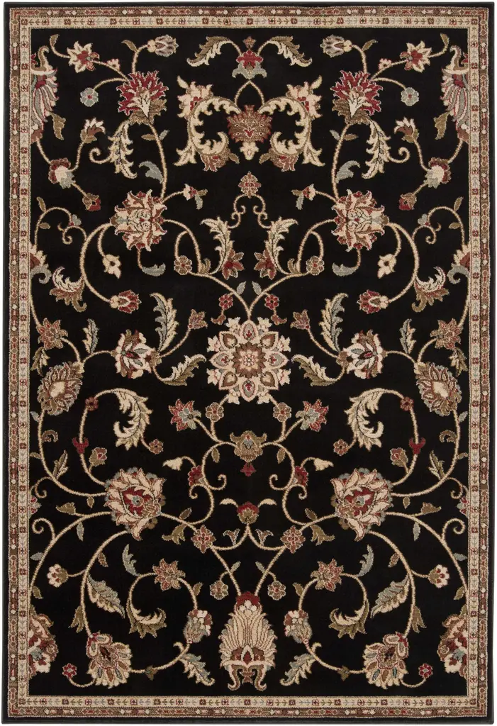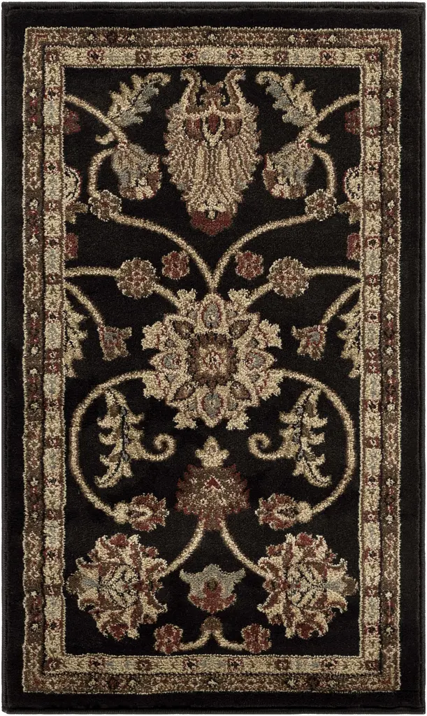 Collection: Salona Colors: Black, Coral, Mustard, Olive, Dark Brown, Medium Gray Construction: Machine Woven Material: 100% Polypropylene Pile: Medium Pile Pile Height: 0.25" Styles: Traditional Made In: Turkey Thickness: 0.55" Price Range: $$$$$ (Most Affordable)