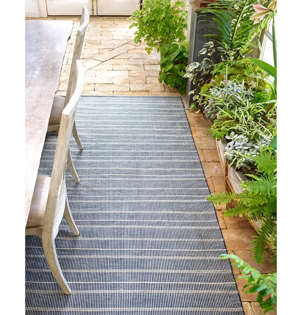 Crafted from UV-treated recycled plastic and handwoven with a reversible stripe design, this eco-friendly rug adds a refreshing touch of contemporary style to any indoor or outdoor space. We recommend a rug pad to extend the life of your rug and keep it securely in place.