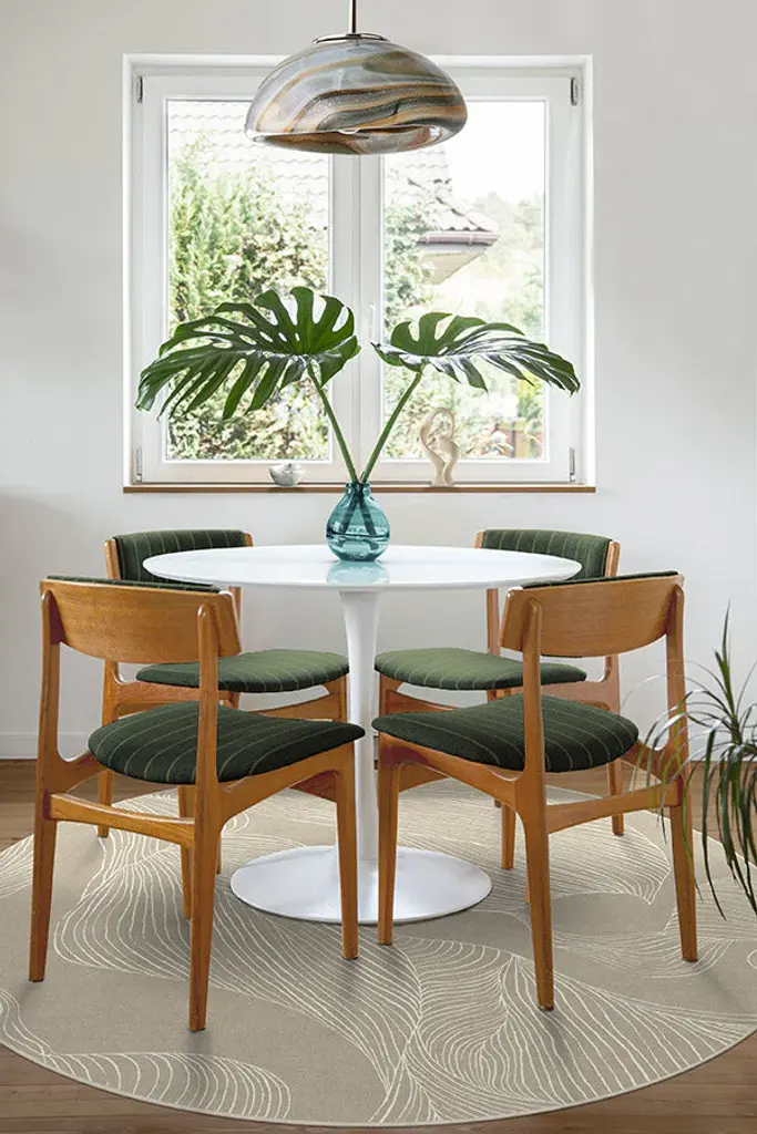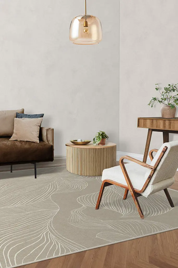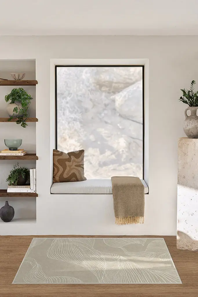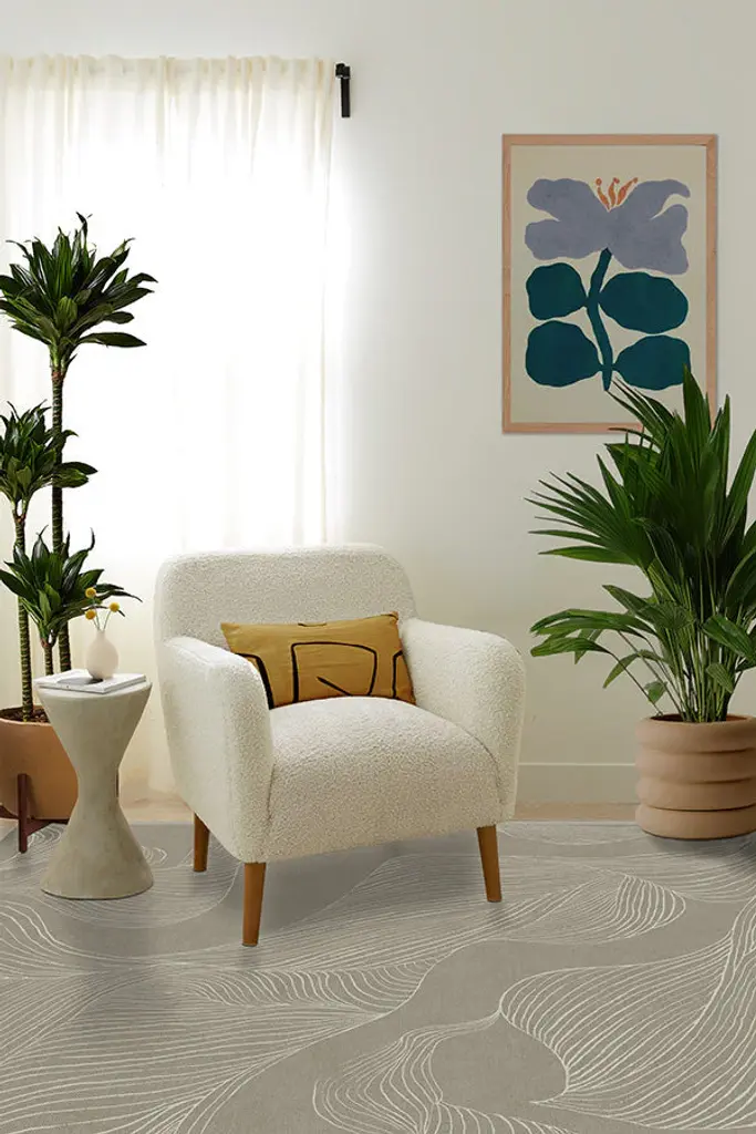 Create a peaceful, worry-free space with our Sana Stone Rug. Featuring a warm and neutral stone background and beautiful, botanical cream linework, this rug boasts a simple, elegant design full of movement and fluidity. Water-resistant, stain-resistant, and machine-washable. Rug colors may vary slightly according to your device and the lighting in your space.