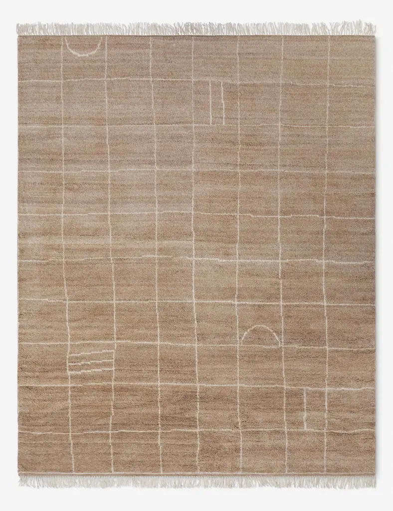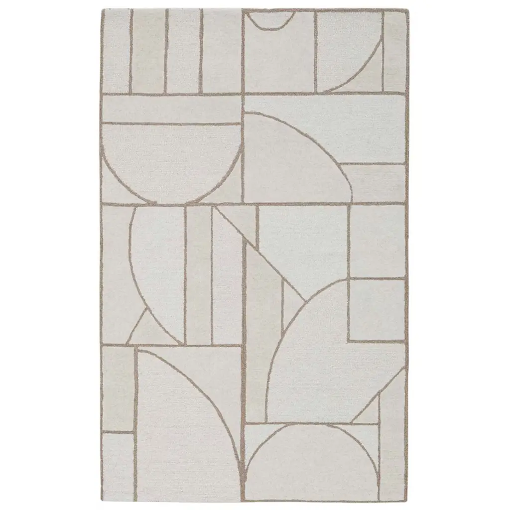 Collection: Sanaz Colors: Ash, Tan Construction: Hand Tufted Material: 100% Wool Pile: Medium Pile Pile Height: 0.28" Styles: Contemporary Backing: Canvas Made In: India Thickness: 0.51" Price Range: $$$$$ (Affordable)