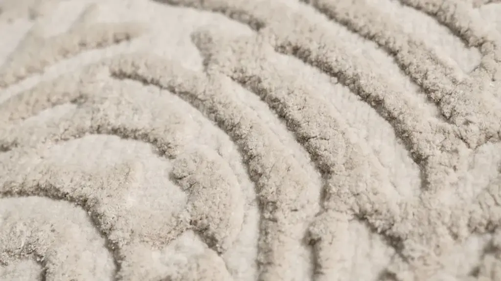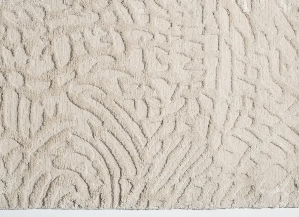 Material: Wool, SilkKnot Density: 60 knots/inch²Pile Height: 3 - 6mmTechnique: Hand-knottedCustom sizes and colors on requestIn the Fabulous collection, mysterious plants are woven into magical hues; rays of light and other immaterial and atmospheric components are rendered by the richness of wool and silk threads in the weave of the rugs. The unique patterns of the rugs surprise with their sophistication and simplicity at the same time.Inspired by reflections of light, the hand-knotted Mirror rug contains 75 % wool and 25 % bamboo silk. The design details are shaped by a 80 knots/inch² knot density and a 4 to 5 mm pile height.