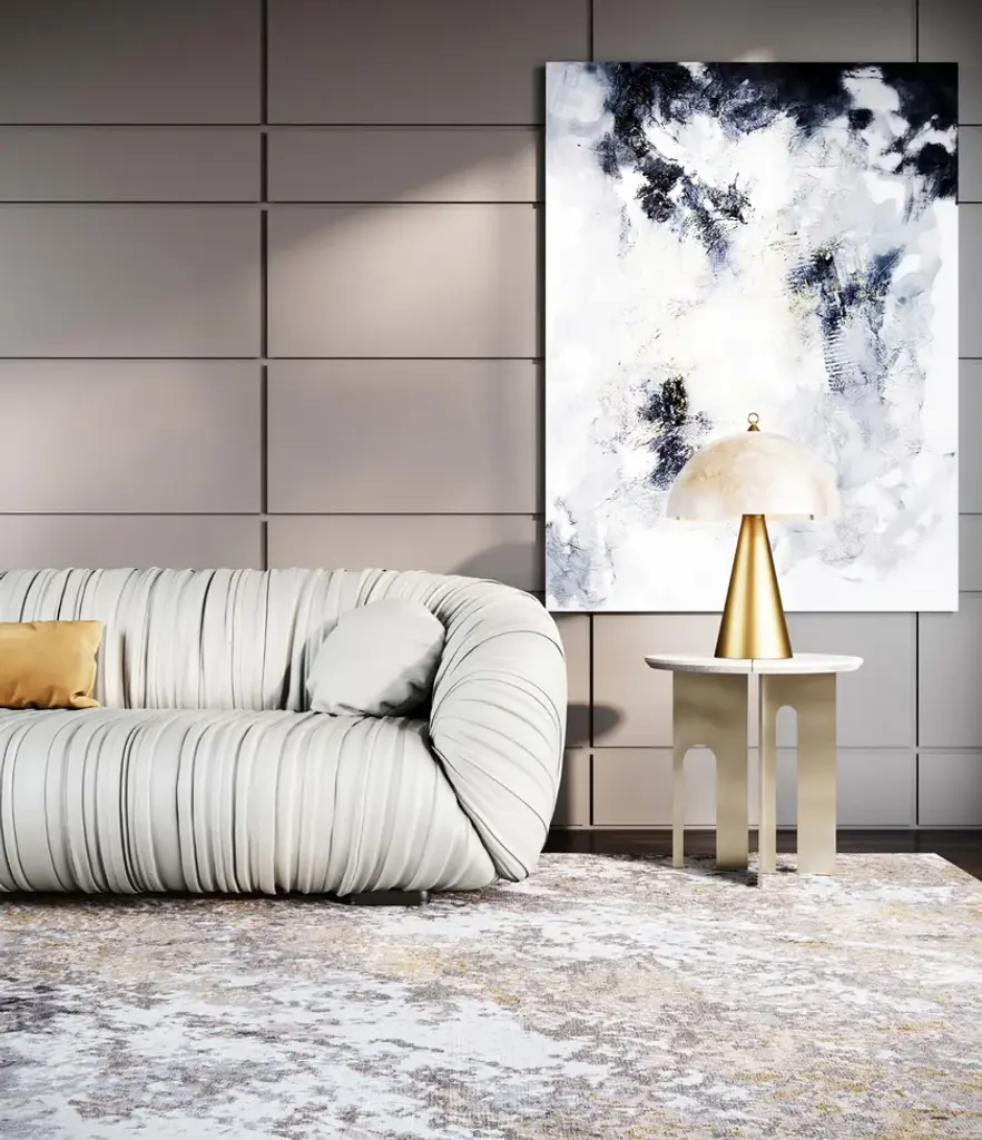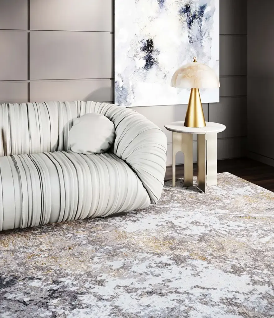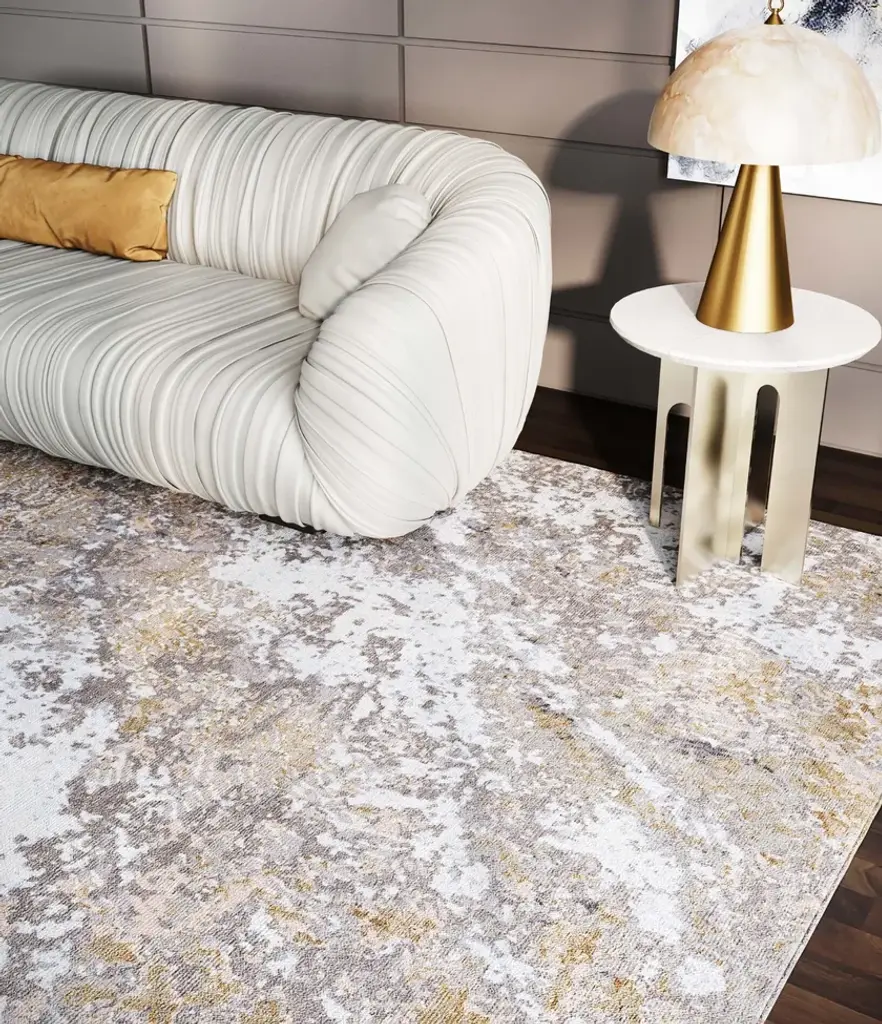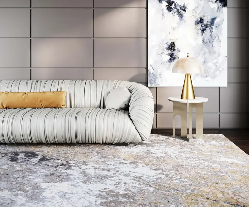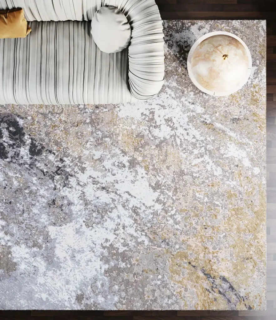 Material: Wool, Blend SilkKnot Density: 100 knots/inch²Pile Height: 5mmTechnique: Hand-knottedCustom sizes and colors on requestThe Himalaya collection is inspired by the surface of the rocky mountains, the crumbly texture, and the complex palette that develops over multiple natural layers. Each rug is handwoven by skilled artisans using the finest materials, resulting in unique and durable pieces.In creating the patterns, Tapis Rouge emulated the texture and the complex color palette of the raw inspiration material, combining different pile heights and loop' types with a 100 knots/inch² knot density.The rug Kuninda Kingdom is made of 90 % wool and 10% blend silk; the pile height is 5mm.