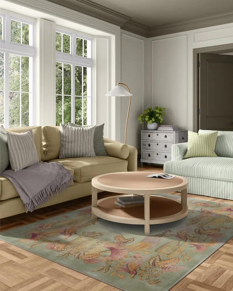 Sanderson Bird Of Paradise Silver Fern Rug