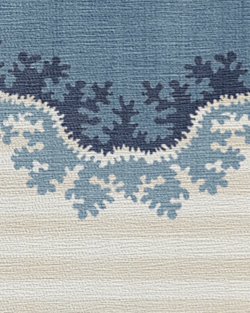 Let imagination in with our Sanderson Oxbow Indigo Rug. Referencing Sanderson’s Oxbow pattern, a stylized river design, this rug features tonal stripes and a contrasting organic border that beautifully frames the motif. Shades of slate blue and navy add depth and dimension to the cream and ivory striped background. Water-resistant, stain-resistant, and machine-washable. Rug colors may vary slightly according to your device and the lighting in your space.