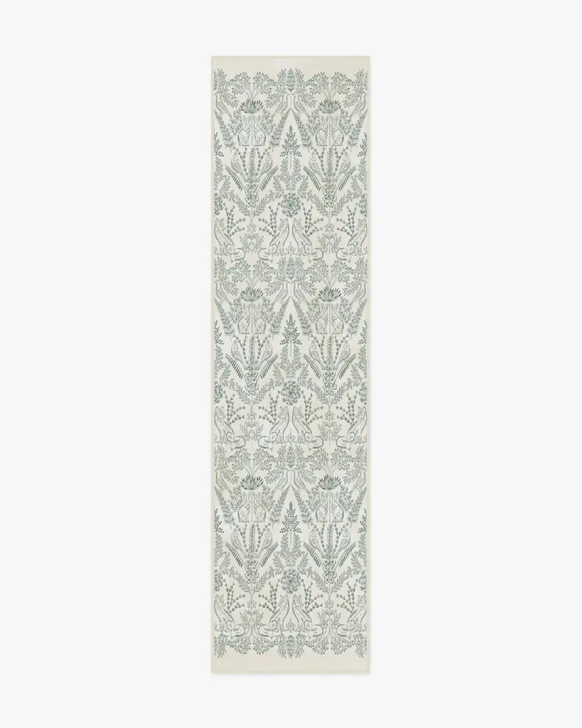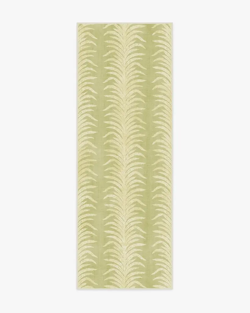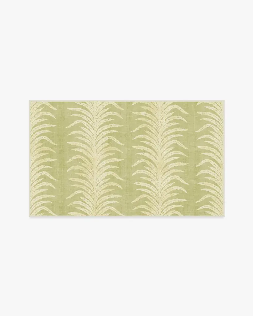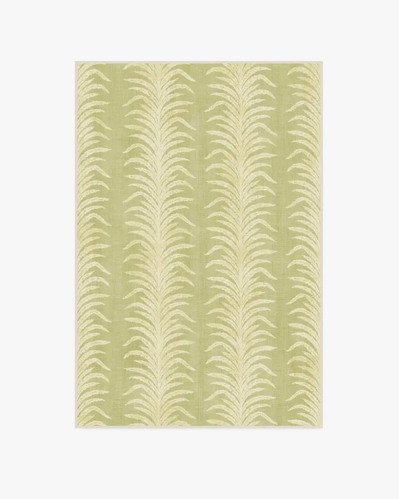 Your story begins at home with our Sanderson Tree Fern Matcha Green Rug. This design features textured tree fern silhouettes that create organic movement within the motifs. The balance of bright cream and soft gold against the matcha green background adds serenity to any space. Water-resistant, stain-resistant, and machine-washable. Rug colors may vary slightly according to your device and the lighting in your space.