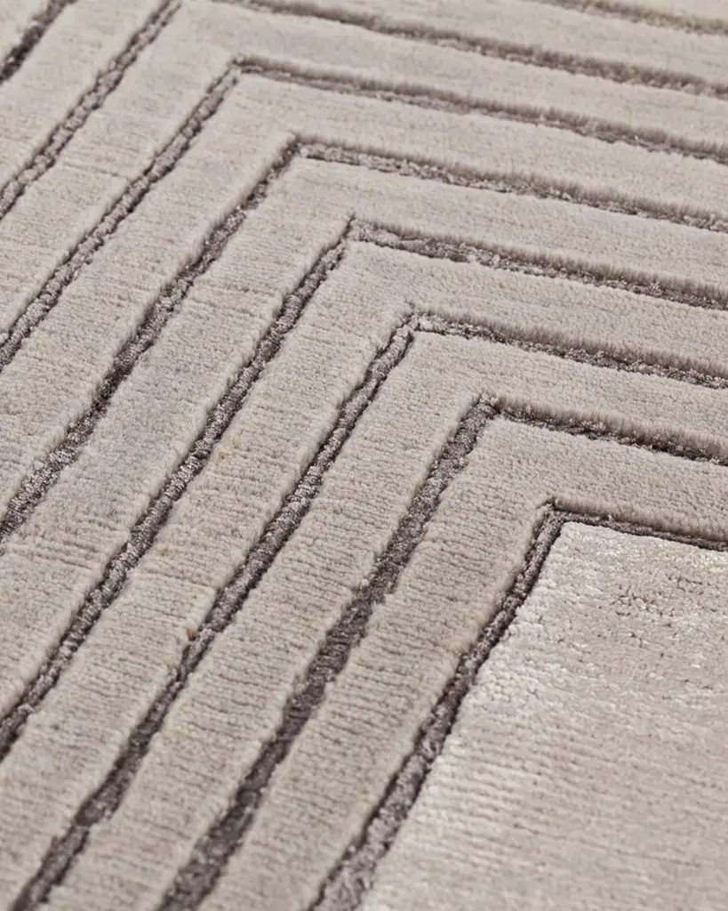 Sandy Neutral PL104 Plano Rectangular 300 Rug in Hand - Knotted Wool by MohebbanDimensions: W 300 x L 200 cmMaterials: Wool.Milan is a city with a secret and hidden life inside many spectacular buildings and the Plano collection by Spanish designer Miguel Reguero is a personal architectural interpretation of this cultural metropolis. The soft and silky heart of the Plano rug gradually transforms into more complex planimetric versions. This geometric arrangement configures an orderly space, ready to be furnished with a free and informal configuration. A play of reliefs and depths in wool and viscose that presents simple designs but rich in personality, materials and execution.The carpet is not a simple furnishing accessory: it is a culture that has been handed down for generations, with wise gestures and refined techniques. With its shape it defines a physical but also spiritual space, and through the knots it tells an ancient and contemporary story, contributing to enriching the private universe of its owner with beauty and uniqueness. A responsibility not to be underestimated, of which the Mohebban family is fully aware. Since the early 1970s, Mohebban has been producing carpets of the highest quality, without forgetting these values and the profound meaning of a thousand-year-old art. From Iran, the family's place of origin, to Milan, the company's headquarters for more than half a century, passing through Turkey, India and Pakistan where production takes place today: for three generations an international vision, in which tradition, attention to detail, ancient gestures find their place, always accompanied by a contemporary look, attentive to design and the challenges of a dynamic and constantly evolving present.