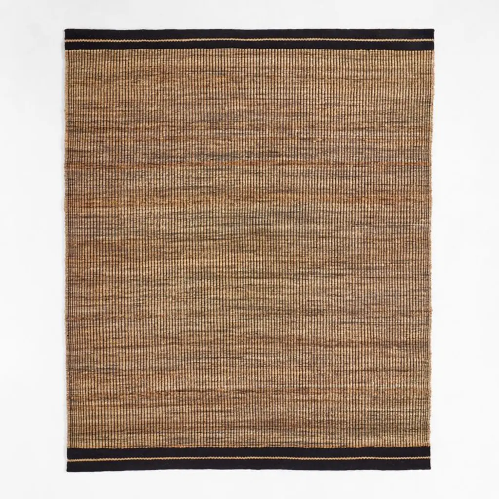 The classic jute rug gets an elevated update in Santa Cruz. Skilled craftspeople weave the natural fiber by hand, creating subtle stripes and crisp borders with contrasting wool in bold black. The inherent variations of jute bring depth and rich texture to our exclusive flatweave rug. Modern organic Santa Cruz suits entryways, dining rooms and other medium- to high-traffic areas.Try it on first. Because color representation may vary by screen, using a swatch is an easy way to see exactly how your favorite rugs will look in your home. Our rug swatches ship free and can be returned online or at any store for a full refund.6'x9' rugs and 8'x10' rugs can be ordered online and picked up in astore near you. It's fast, easy and free.For larger rugs, order online and arrange a convenient delivery or warehouse pickup.