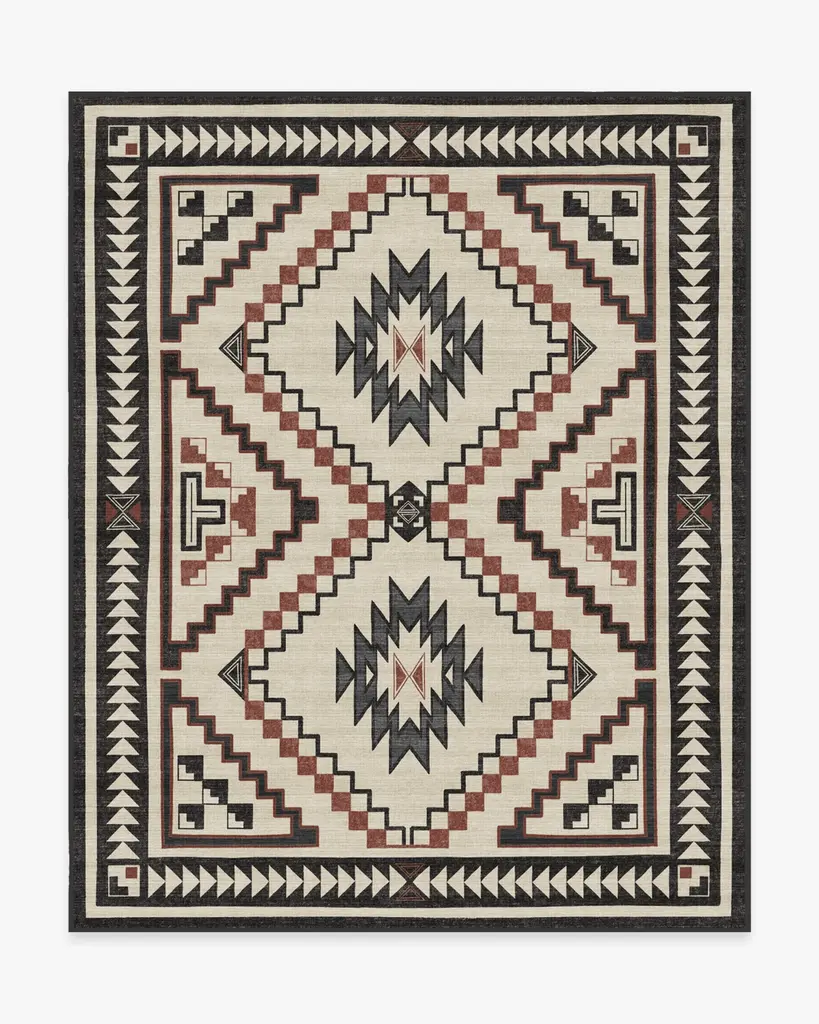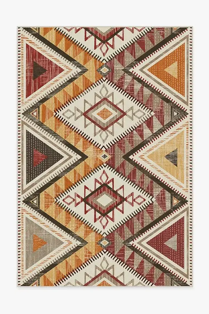 Add a touch of Southwestern inspiration to your home with our contemporary Santa Fe Multicolor Rug. This orange geometric rug features a lightly distressed Southwestern motif in an earth tone palette.