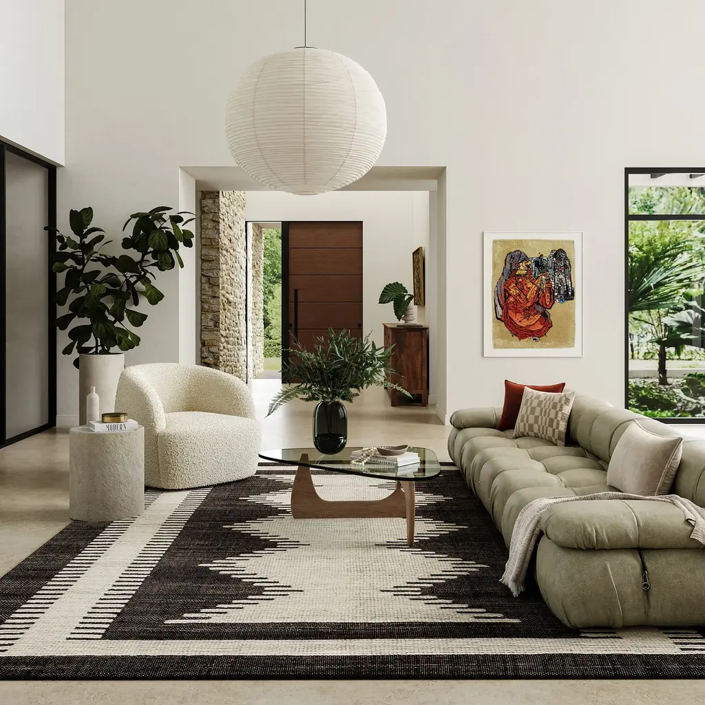 The Sante Fe Southwestern Wool Rug's bold, desert-inspired motif is a must-have for anyone looking to add a touch of Southwestern style to their space. The high-contrast pattern is sure to make a statement, while the handcrafted wool construction delivers artisanal quality and added comfort. If you're looking for a quality foundation for your bohemian, eclectic, or rustic space, you've found it.