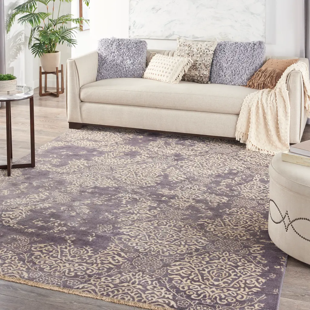 Step into a room where the classic grace of damask meets contemporary flair. The Sapphire Essentials Damask Contemporary Bamboo Rug, with its perfectly sized 2' x 3' dimensions, transforms smaller spaces into statements of subtle sophistication. Picture it stationed in an entryway, a hallway, or a cozy corner of your bedroom, setting the tone with its elegant presence. This rug smartly fits in front of a kitchen sink or beside a bathroom vanity, promising to be that touch of comfort you've been looking for. The rug’s exceptional softness whispers of luxury, crafted from bamboo-extruded silk-like fiber. This innovation takes the lavish feel of silk and blends it with the eco-friendly benefits of bamboo. What you get is a surface so plush, it's a delight with every step, offering a sustainable choice for those who prize durability and beauty in their homes. Its design is a masterclass in balancing the old with the new. A deep purplish-grey forms the backdrop, allowing the muted beige of a contemporary damask to shine in an artfully faded fashion. There’s a charm in how the pattern feels timeless yet fresh, making it a perfect accompaniment to both modern and transitional interiors. The rug manages to capture attention without ever screaming for it, a testament to its refined aesthetic. From the hands of skilled artisans in India comes this tapestry of quality craftsmanship. Every detail speaks to a tradition of textile artistry, ensuring that this piece resists the wear of daily foot traffic with grace. The Sapphire Essentials rug isn’t just about style; it's about introducing an elegant touch that complements and elevates.