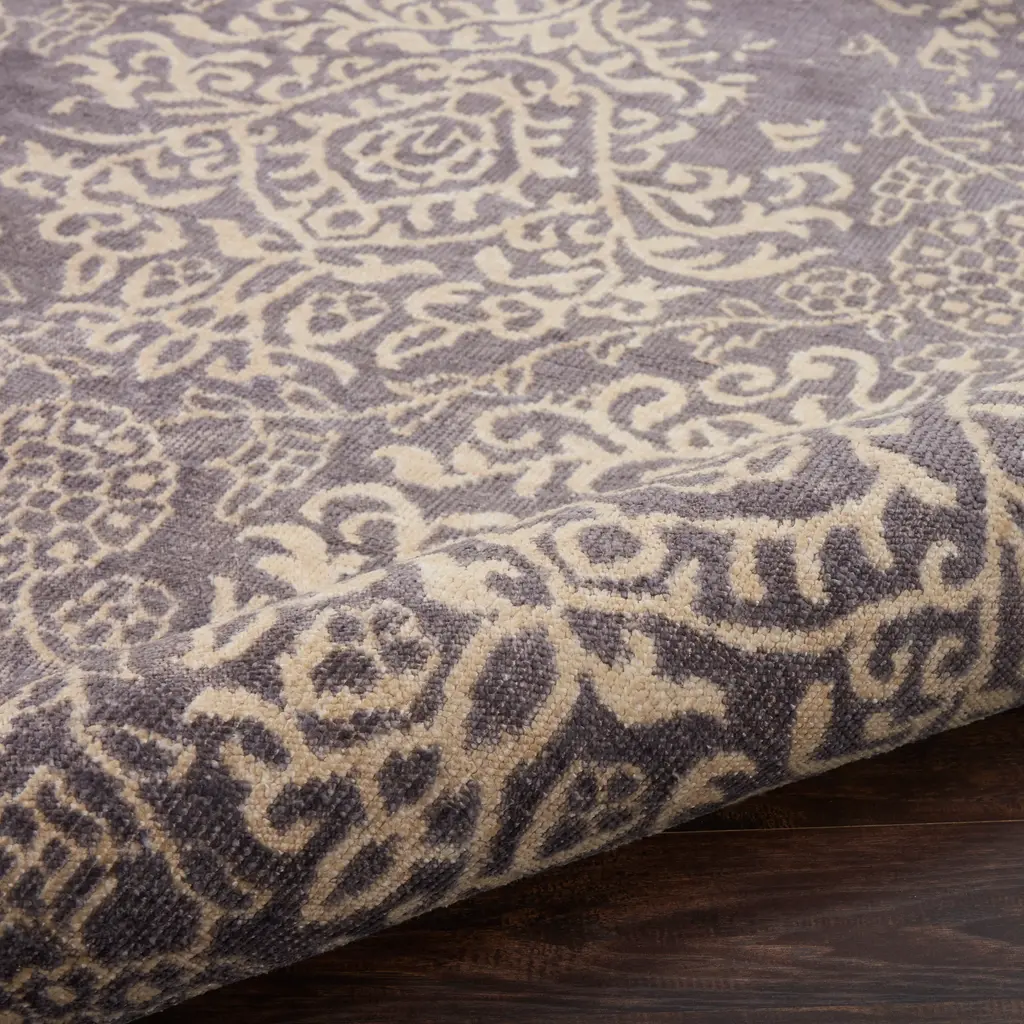 Step into a room where the classic grace of damask meets contemporary flair. The Sapphire Essentials Damask Contemporary Bamboo Rug, with its perfectly sized 2' x 3' dimensions, transforms smaller spaces into statements of subtle sophistication. Picture it stationed in an entryway, a hallway, or a cozy corner of your bedroom, setting the tone with its elegant presence. This rug smartly fits in front of a kitchen sink or beside a bathroom vanity, promising to be that touch of comfort you've been looking for. The rug’s exceptional softness whispers of luxury, crafted from bamboo-extruded silk-like fiber. This innovation takes the lavish feel of silk and blends it with the eco-friendly benefits of bamboo. What you get is a surface so plush, it's a delight with every step, offering a sustainable choice for those who prize durability and beauty in their homes. Its design is a masterclass in balancing the old with the new. A deep purplish-grey forms the backdrop, allowing the muted beige of a contemporary damask to shine in an artfully faded fashion. There’s a charm in how the pattern feels timeless yet fresh, making it a perfect accompaniment to both modern and transitional interiors. The rug manages to capture attention without ever screaming for it, a testament to its refined aesthetic. From the hands of skilled artisans in India comes this tapestry of quality craftsmanship. Every detail speaks to a tradition of textile artistry, ensuring that this piece resists the wear of daily foot traffic with grace. The Sapphire Essentials rug isn’t just about style; it's about introducing an elegant touch that complements and elevates.