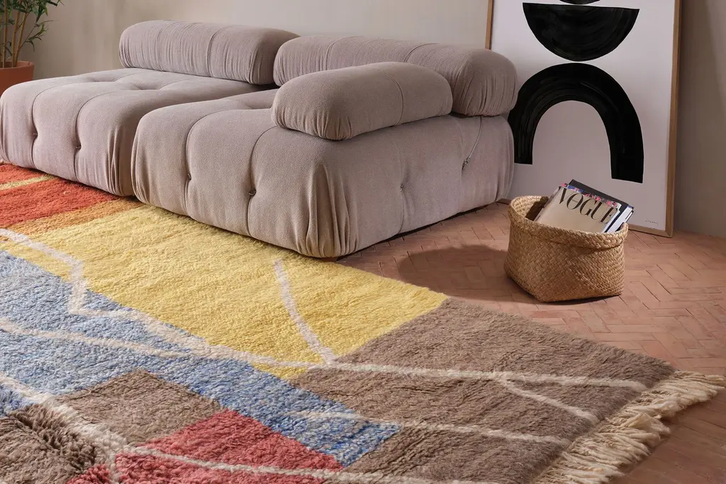 Our Moroccan pieces are each one-of-a-kind. Much of our collection was woven between 30 and 100 years ago, and curated by us. Other rugs in our collection are fresh off the loom and made with traditional techniques. Moroccan rugs don’t come with a key. As with any painting or poem, their motifs have many subjective interpretations. Originally made for personal use, these rugs took months to weave, documenting a shifting tide of events and emotions in the weaver’s life.