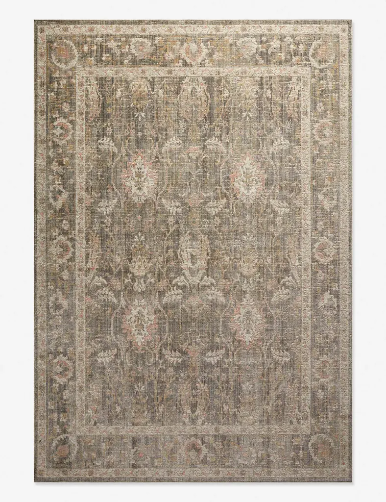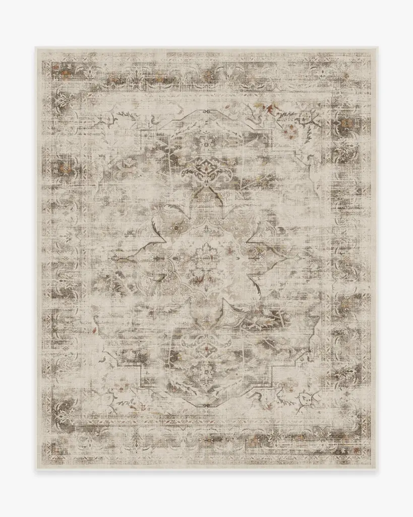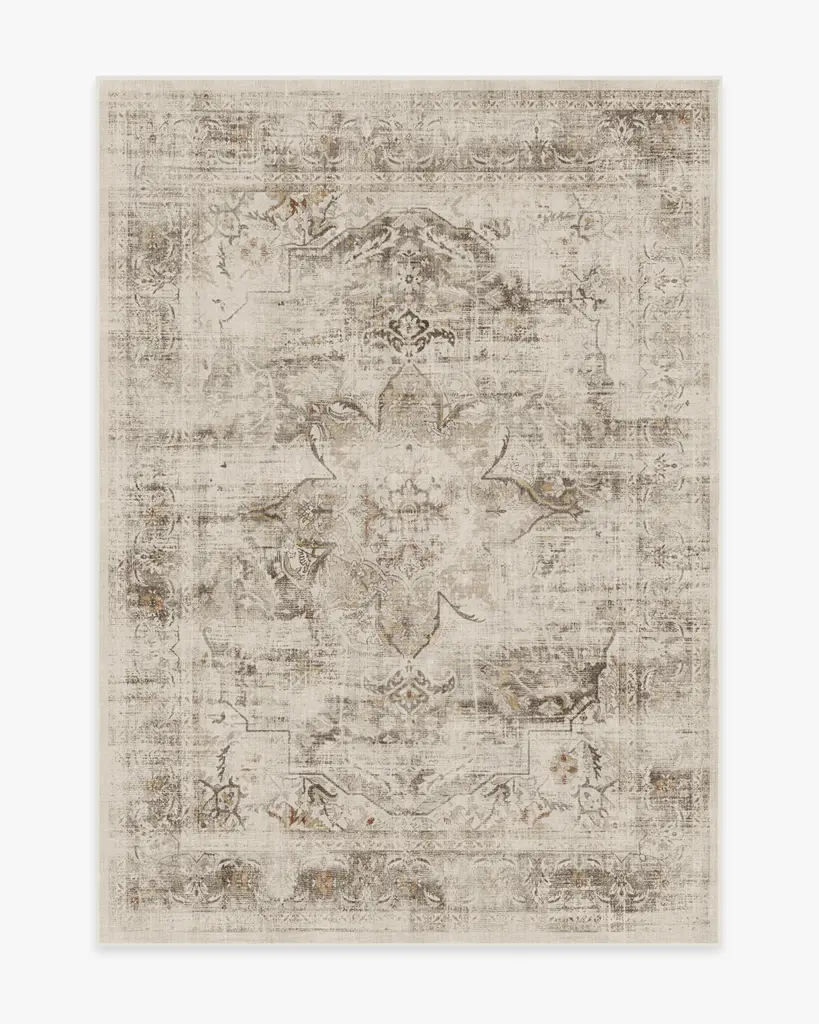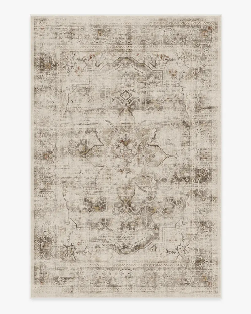 Warm and rustic. Shades of cream, brown, and hazel blend together in this rug to create a beautifully rich, distressed design featuring a floral medallion and border. Water-resistant, stain-resistant, and machine-washable.