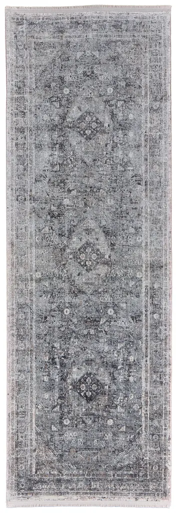 Collection: Sarrant Colors: Gray, Silver Gray, Ivory Construction: Machine Made Material: Face: Viscose, Polyester / Warp: Cotton Pile: Low Pile Pile Height: 0.22" Styles: Transitional,Bohemian & Eclectic,Casual Backing: Cotton Made In: Turkey Thickness: 0.22" Price Range: $$$$$ (Premium)