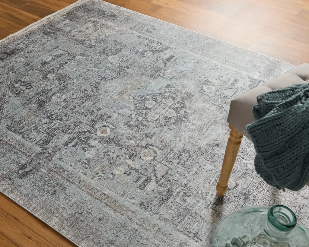 Sarrant Transitional Medallion - Gray/silver/ivory Area Rug - 4' X 5'3" Rectangle