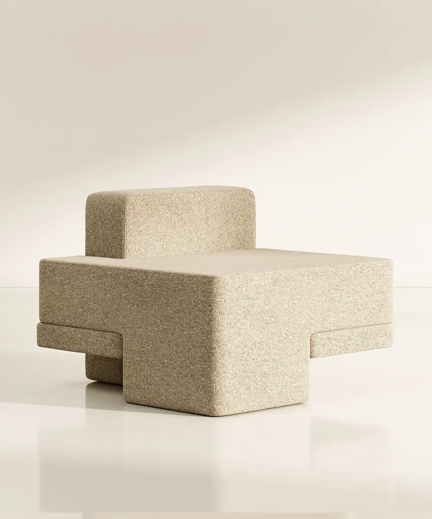 The Sarsen Series, designed by MKCA for TRNK Collection, embraces the dynamic interplay of objects, while emphasizing articulation and open-endedness. Drawing inspiration from joinery, the seating’s asymmetrical distribution of heft and lift ensures visual continuity throughout limitless configurations. The irregular shapes of the rugs reinforce the multidirectional nature of the collection, intending to ground a space without giving it hard boundaries. The Sarsen Series highlights the transformative power of elements in shaping function, habitation, and interaction.